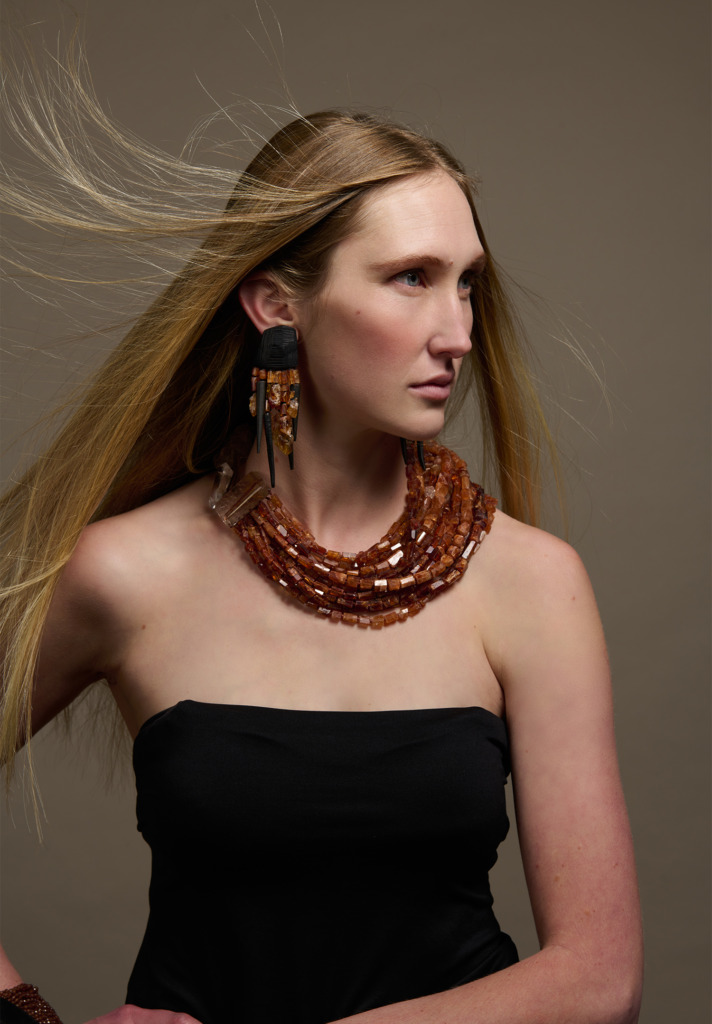 Respectfully finding and using unconventional, raw substances like stones, wood, and bones allows the designers to craft individually unique adornments that appreciate the allure of the natural world.