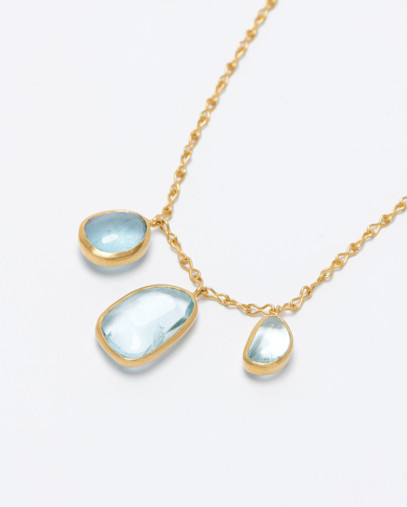 In her handmade fine jewelry, she lets these stories take center stage – each a unique imprint of the stone’s place of origin, such as fiery Brazilian kyanite or dulcet Pakistani aquamarine.