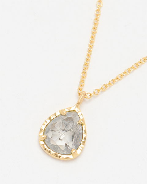 Yasuko’s jewelry focuses on the telluric combination of handworked 18K gold and unusual precious gems, such as grey diamonds and untreated Akoya pearls. Prized for their character and inclusions, earth toned stones are central to her collection.