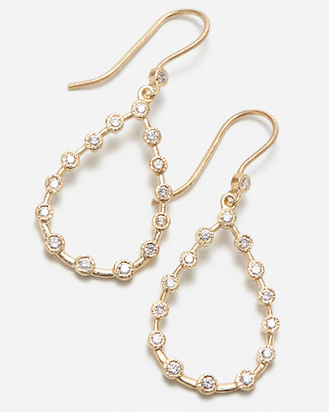 Harnessing her sophisticated and organic design sense, she transforms classic jewelry silhouettes, such as the teardrop hoop, into modern, feminine pieces ideal for both gifting to someone loved or enjoying all for yourself.