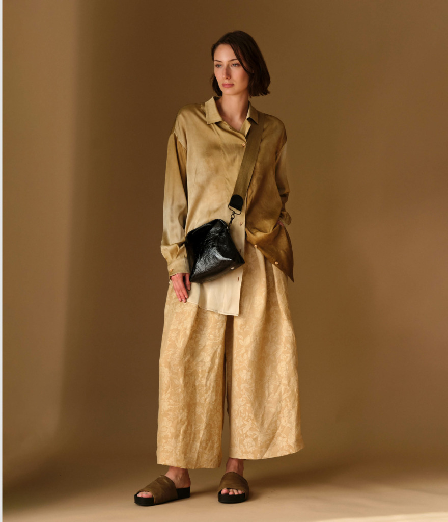 Uma’s earthy, provocative collection proves pattern does not have to be bright to be striking. Using atmospheric effect to her advantage, Uma Wang explores delicate brocades and subtle iridescent finishes that shift depending on the light.