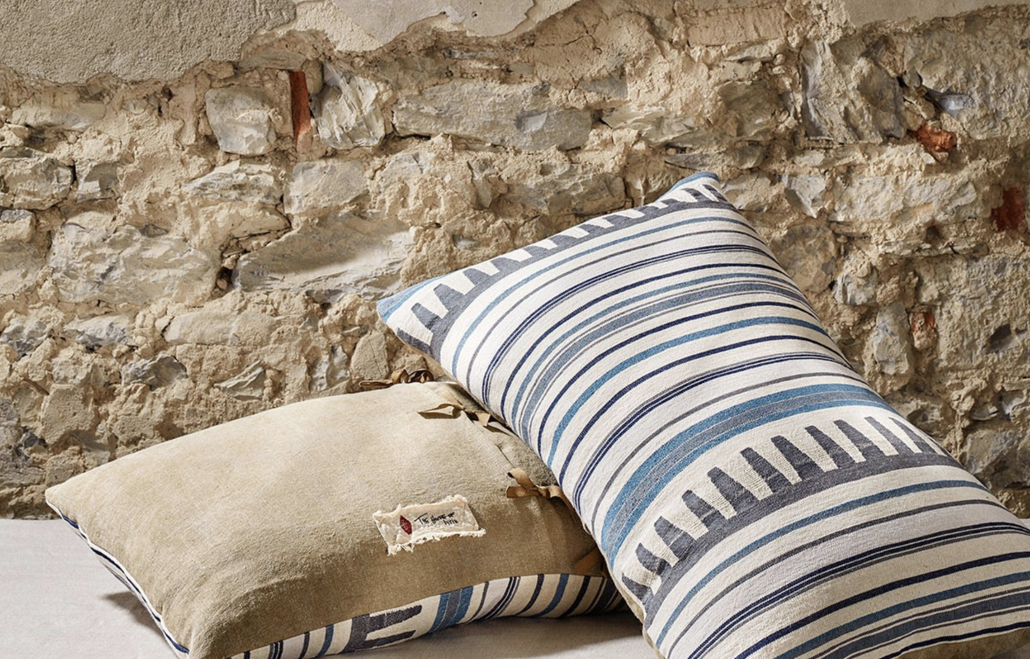 House of Lyria Linen and Cotton Itaca Pillow in Blue Mirage