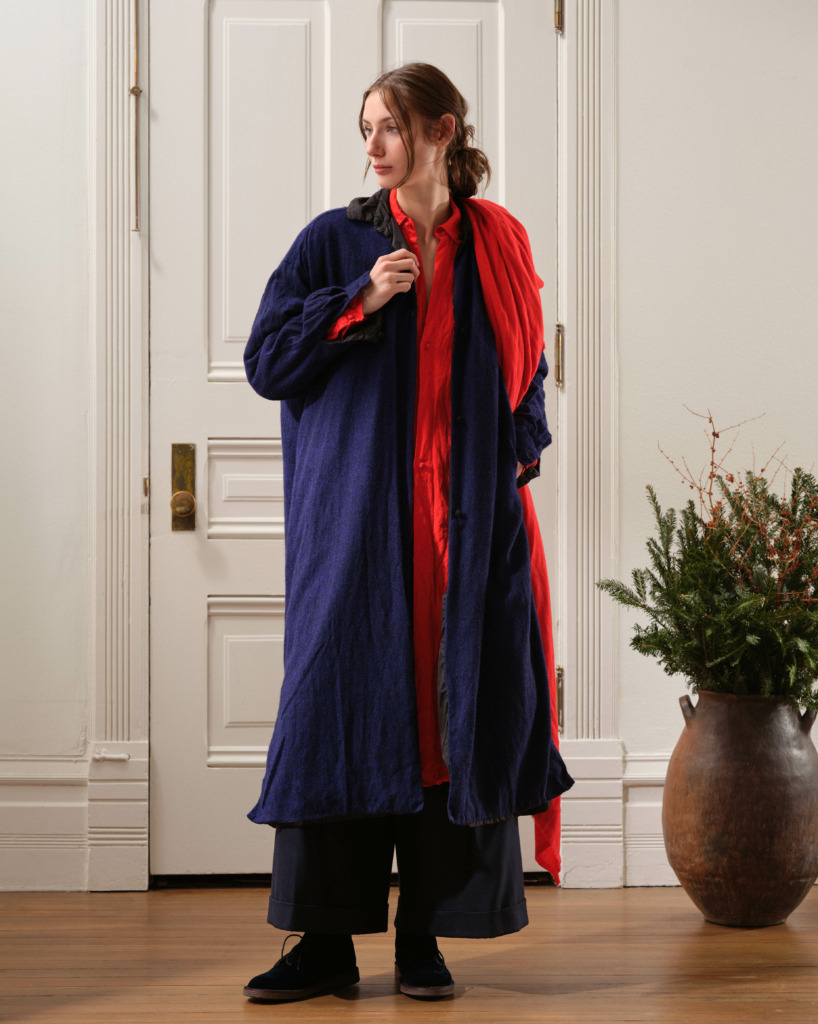 A wonderfully warming, yet vibrant piece, Daniela Gregis’ Cashmere Double Note Coat is highly functional: turn to one side for a warming windbreaker and the other for insulating outerwear.