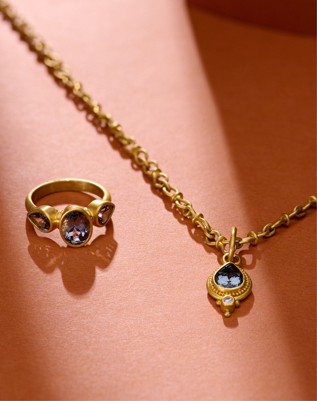 Denise’s gems are not only conflict-free but of impeccable quality and character. She works with a distinct 22K gold handcrafted in her Santa Fe studio. These elements work together in easy harmony: the stones catch the eye, while the gold holds its attention. Paired with her seamless designs and keen sense for color, Denise harnesses the rare qualities of a prized heirloom: trendless, timeless, and like no other.