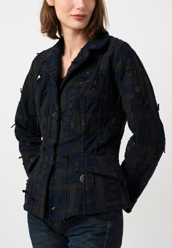 Alabama Chanin Beaded "Angie's Fall" Betsy Blazer in Black & Navy Blue