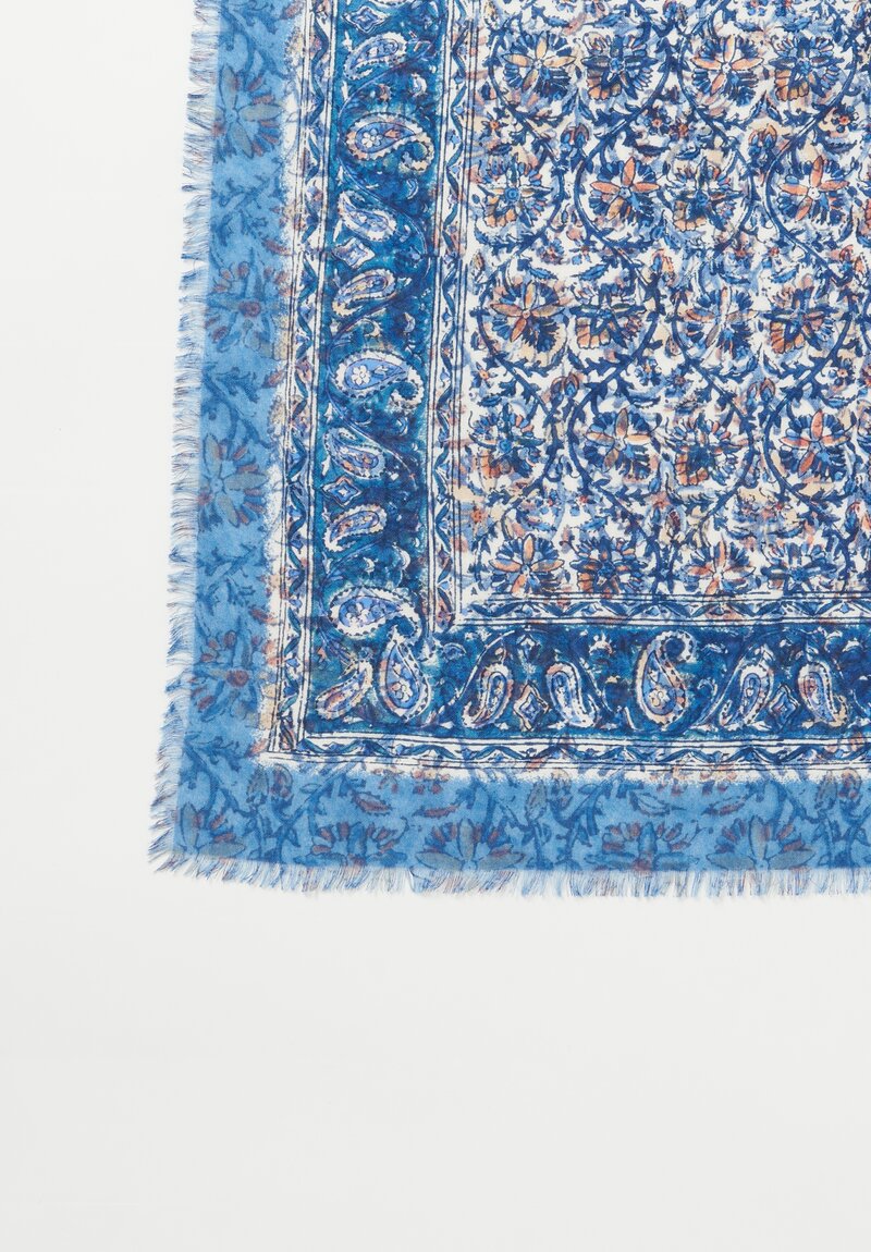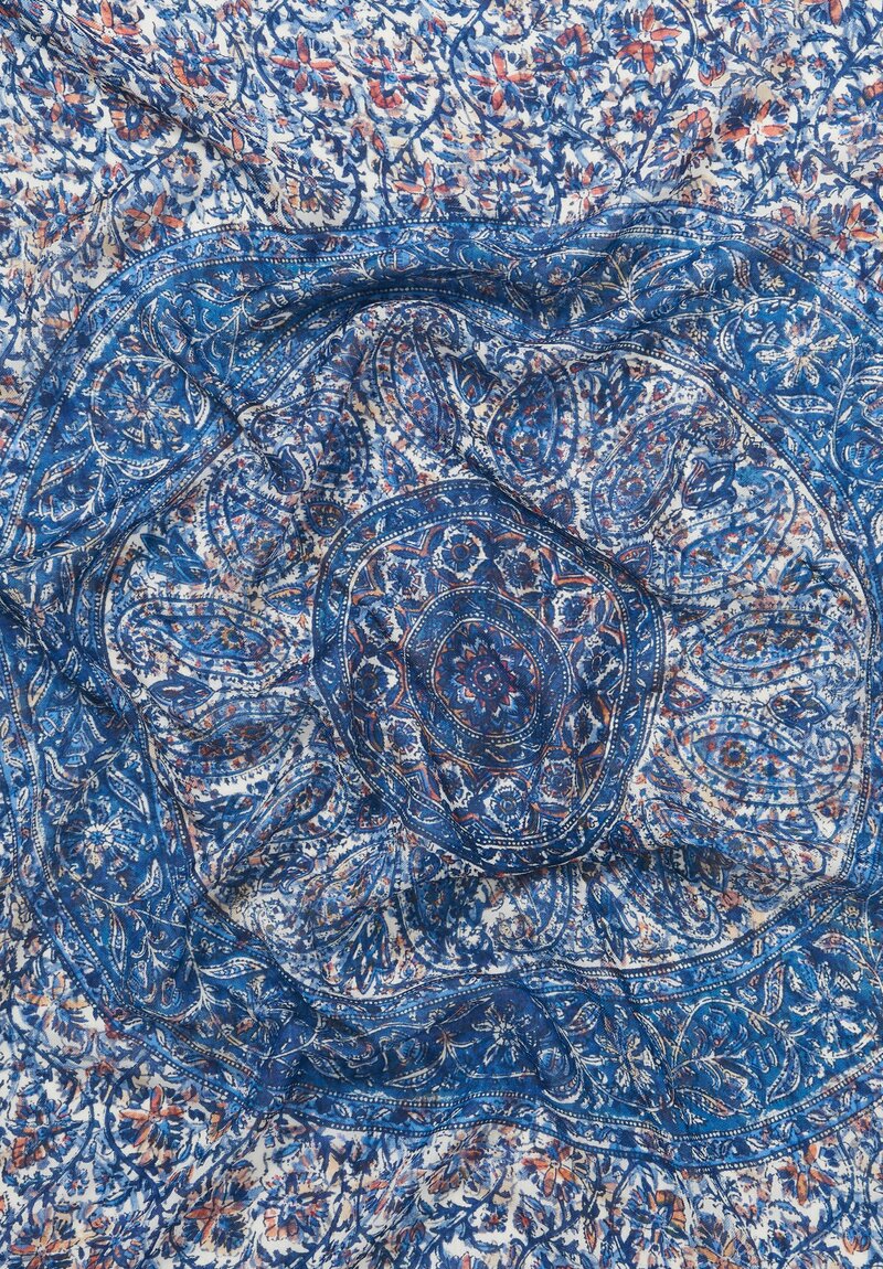 Cashmere Square Printed Scarf in Blue & Orange Paisley