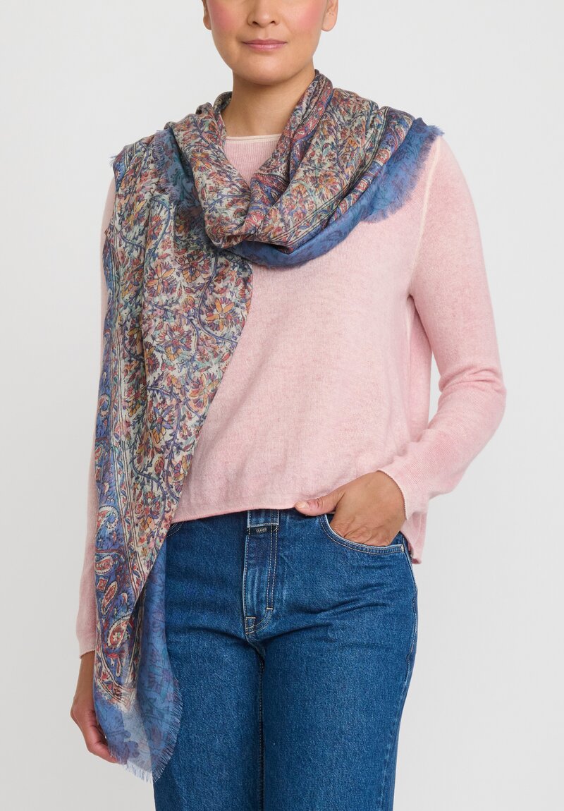 Cashmere Square Printed Scarf in Blue & Pink Paisley