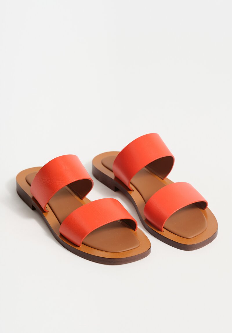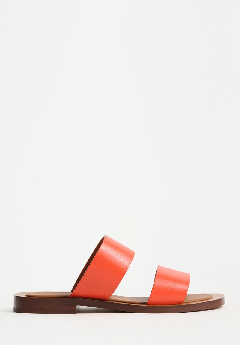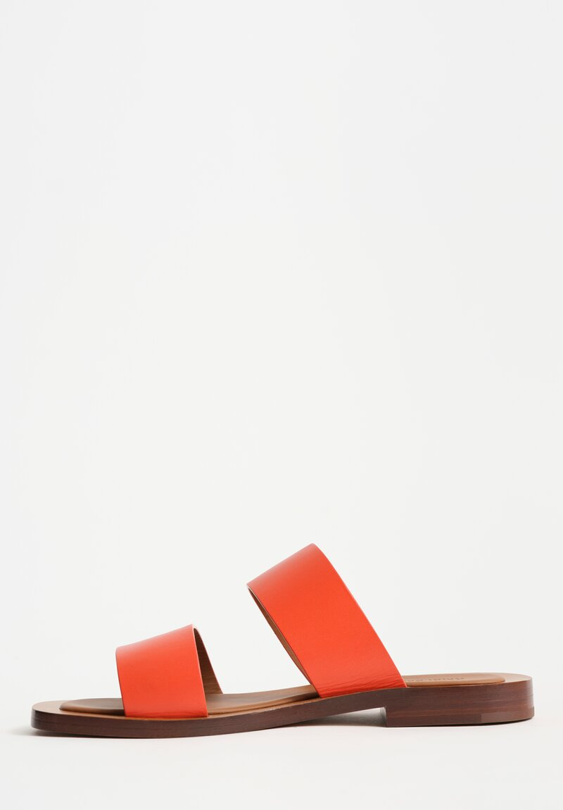 Amblẽme Calfskin Leather Ugalde Double-Band Slides in Orange