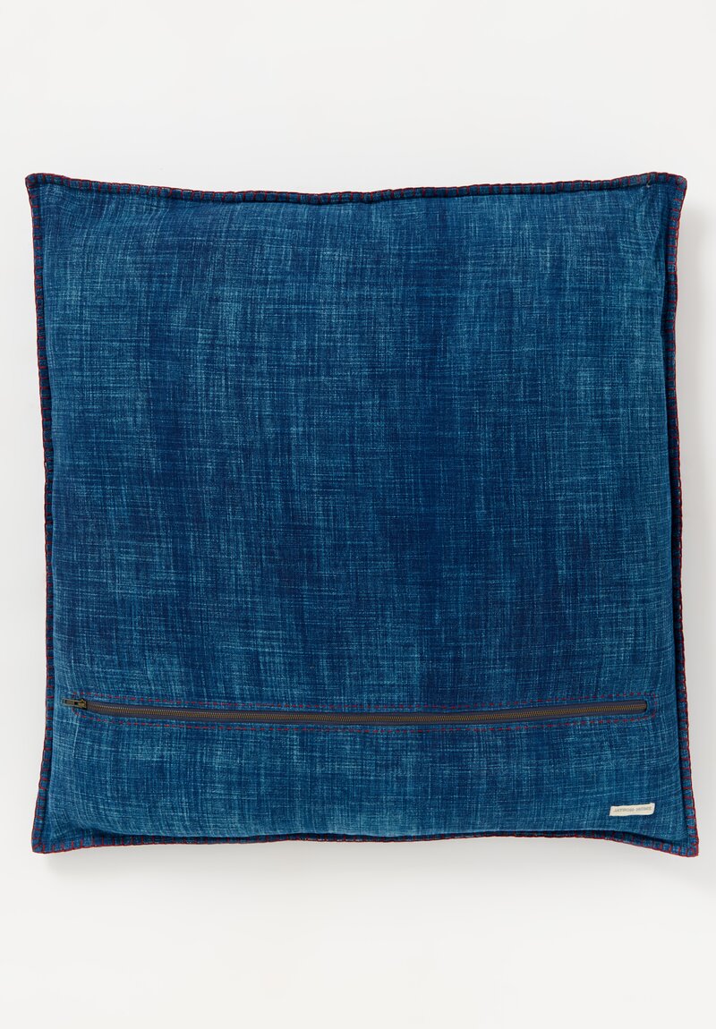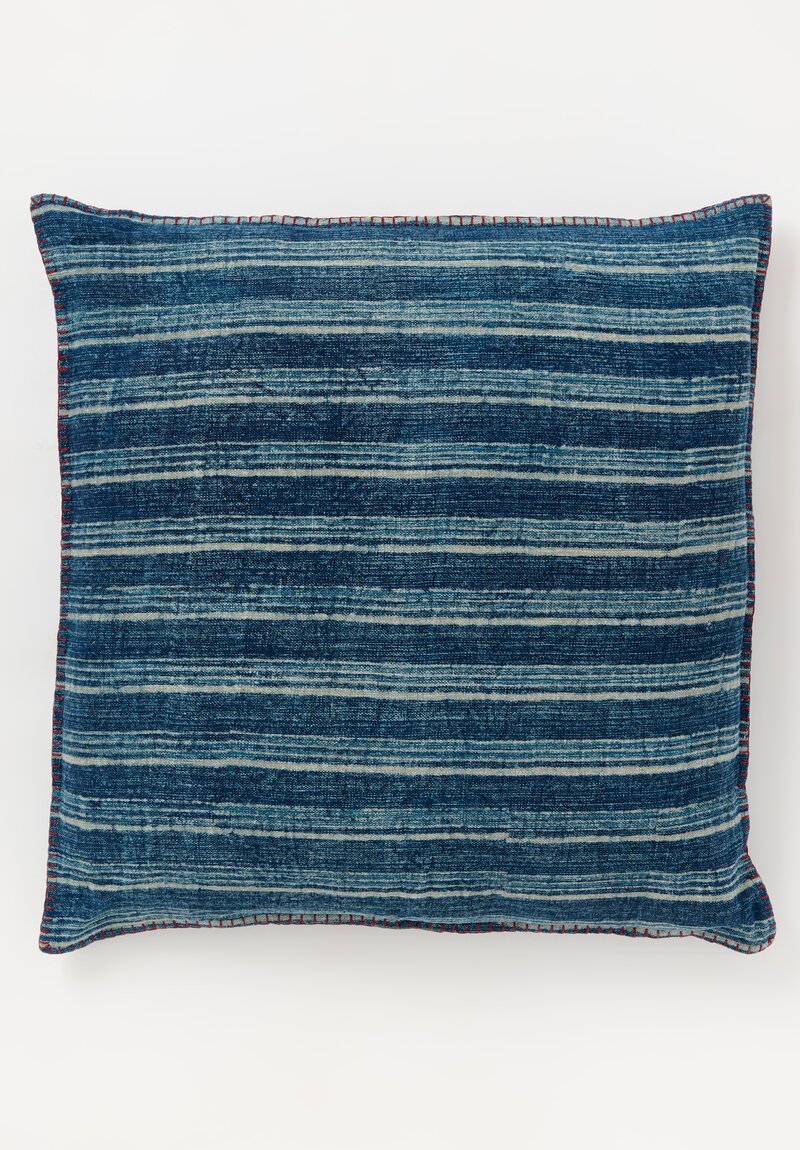 Antique and Vintage Cotton & Linen Blanket Stitched Pillow in Indigo Blue Stripes