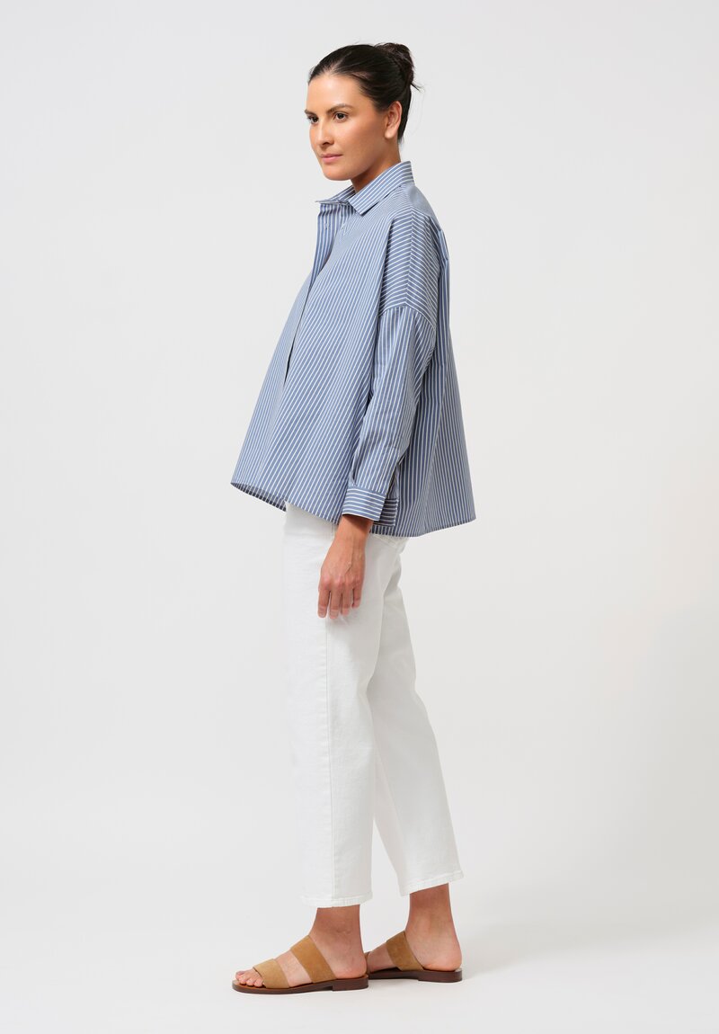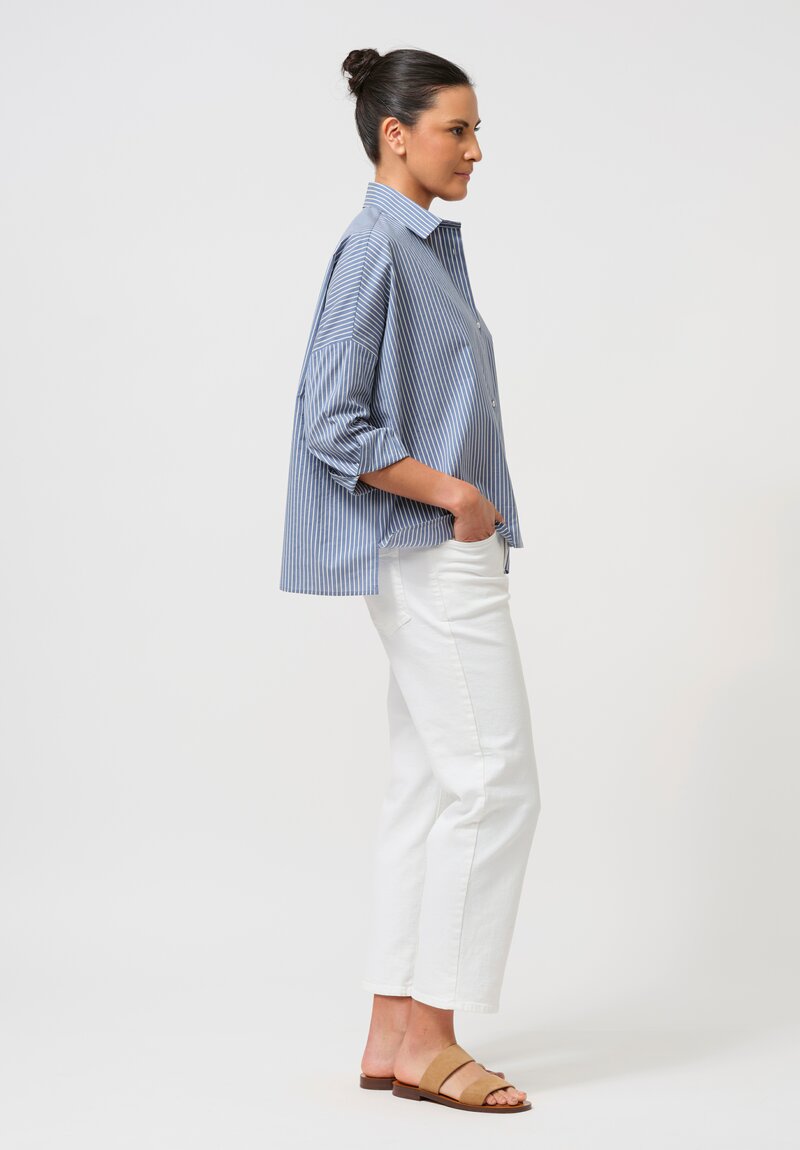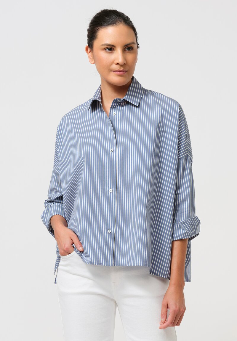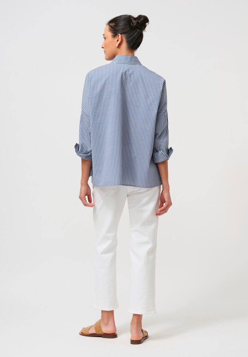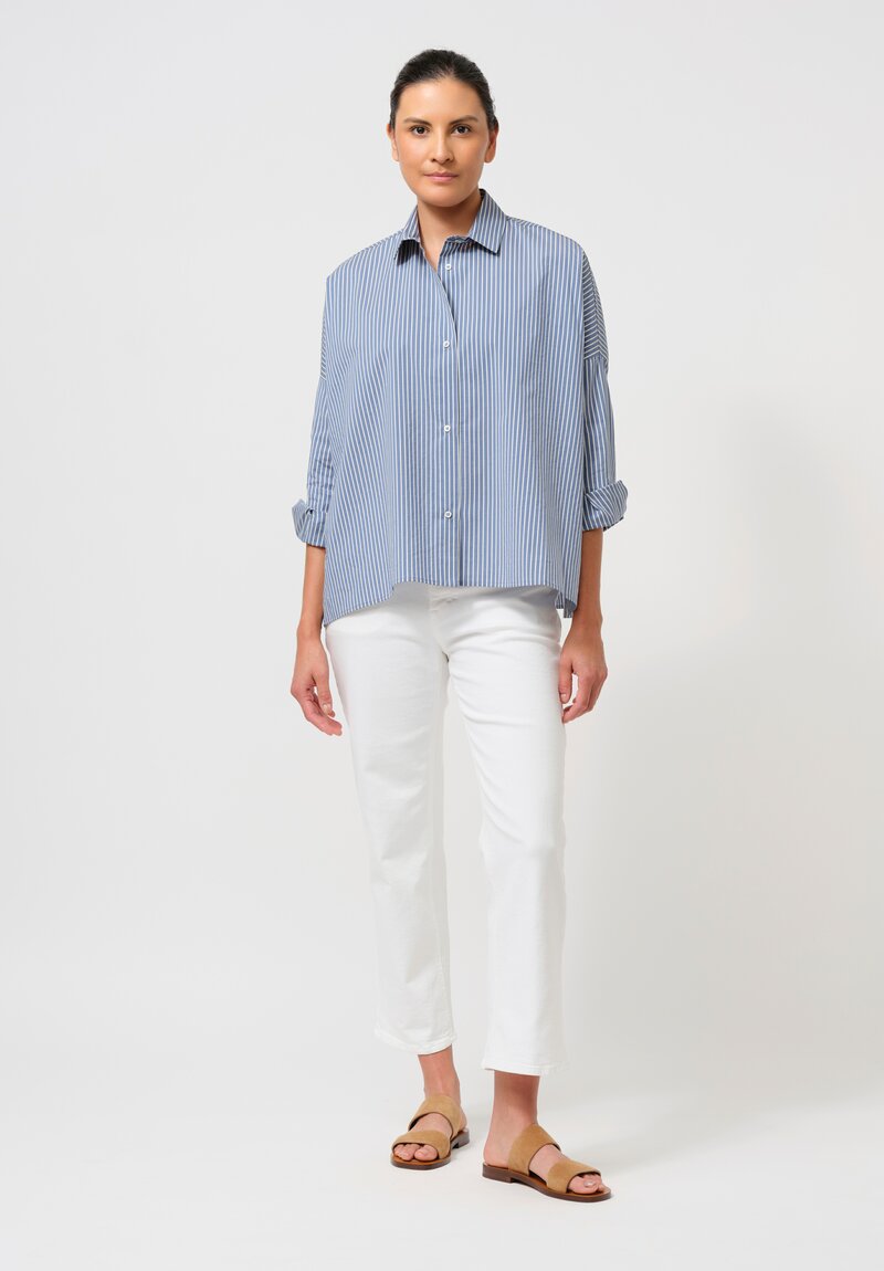 Antonelli Cotton & Silk Clarissa Shirt in Oxford Blue Stripes