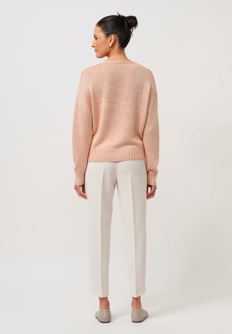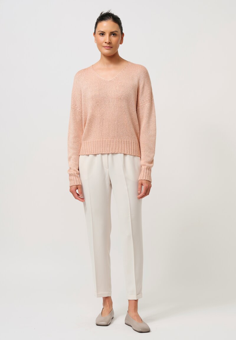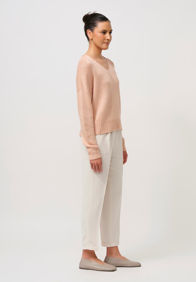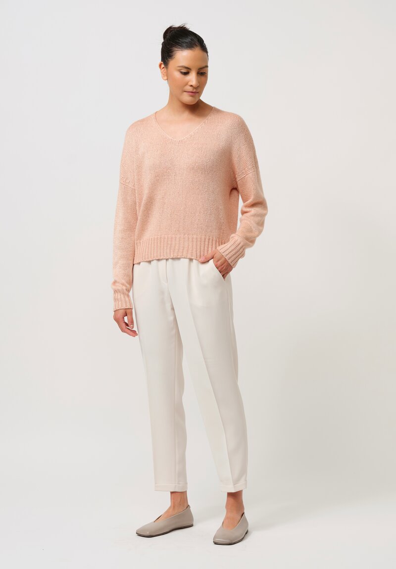 • Iris Von Arnim Silk Malva V-Neck Knitted Sweater in Peach Pink