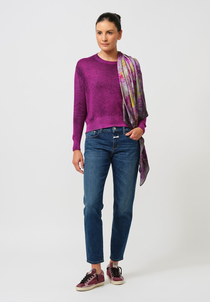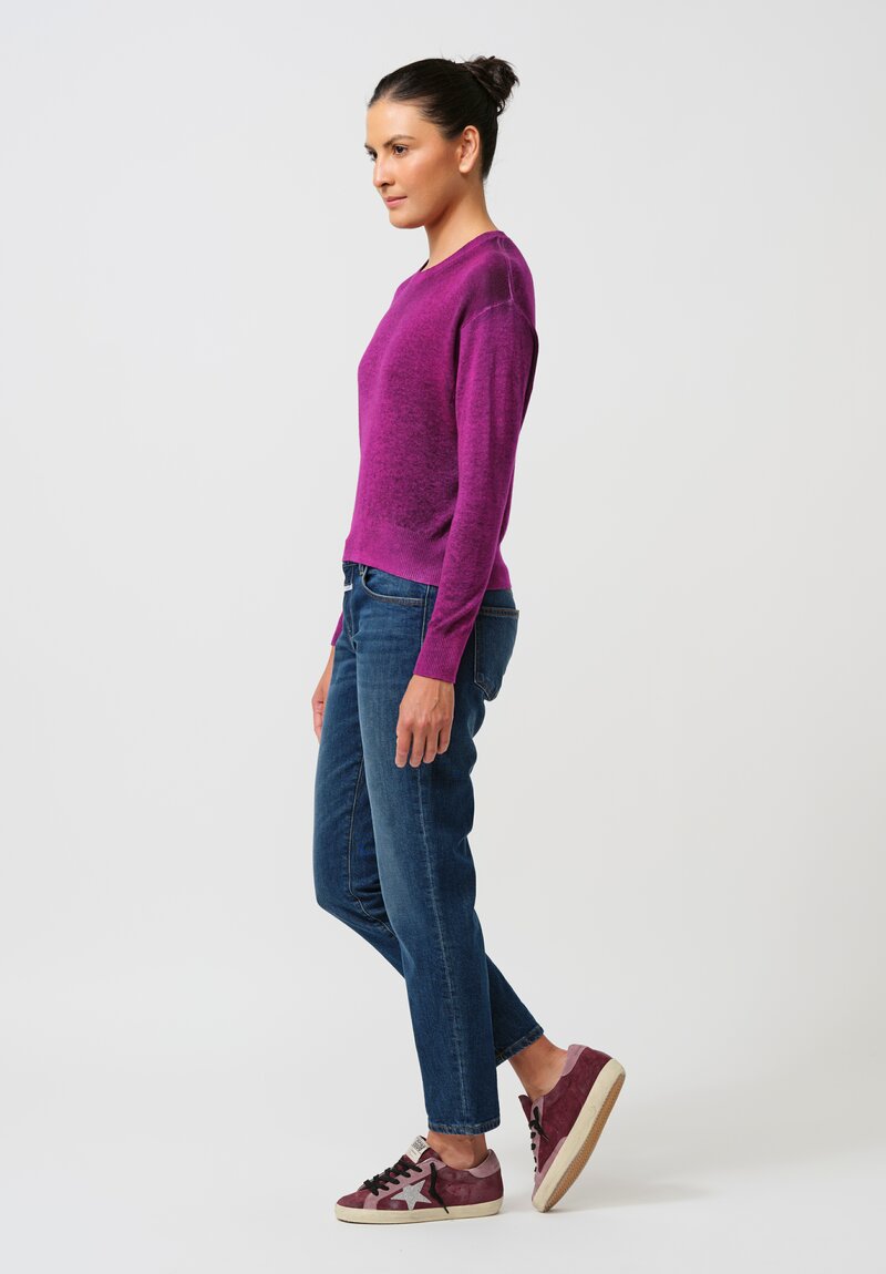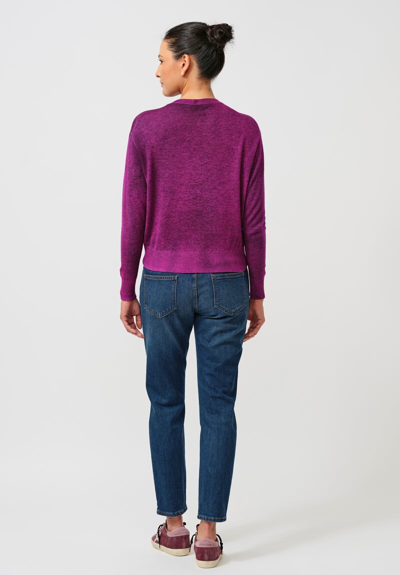 Avant Toi Cashmere Round Neck Ribbed Hem Sweater in Nero & Orchid Purple