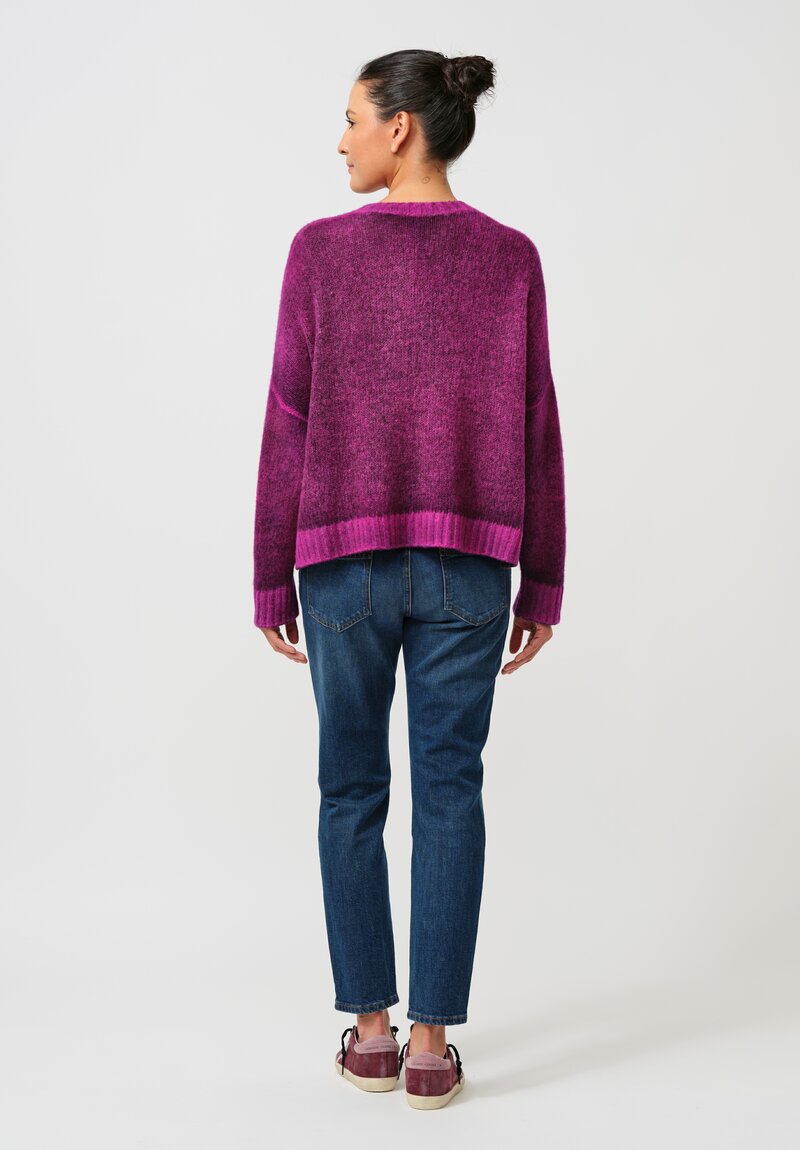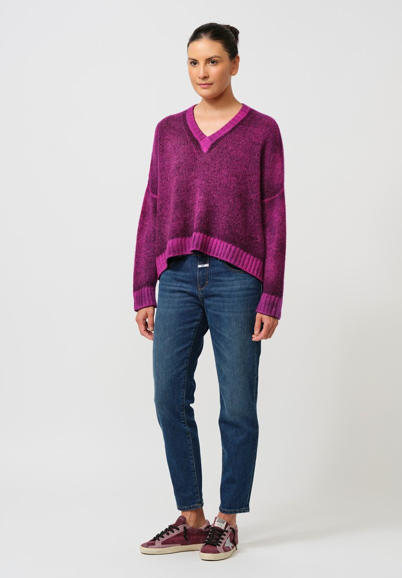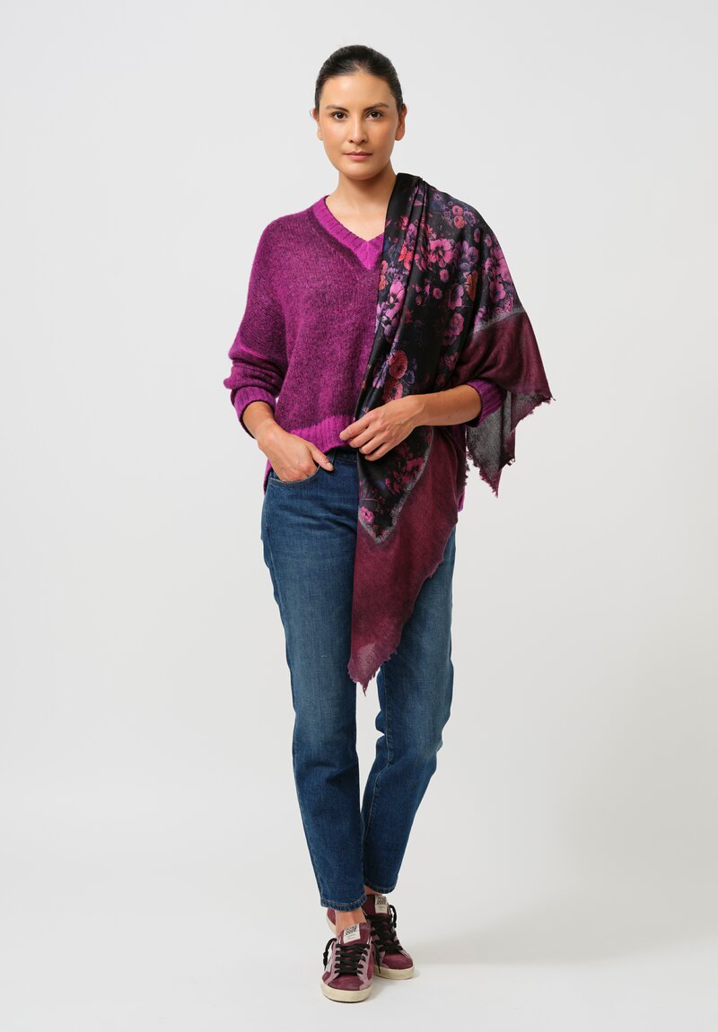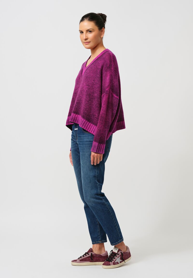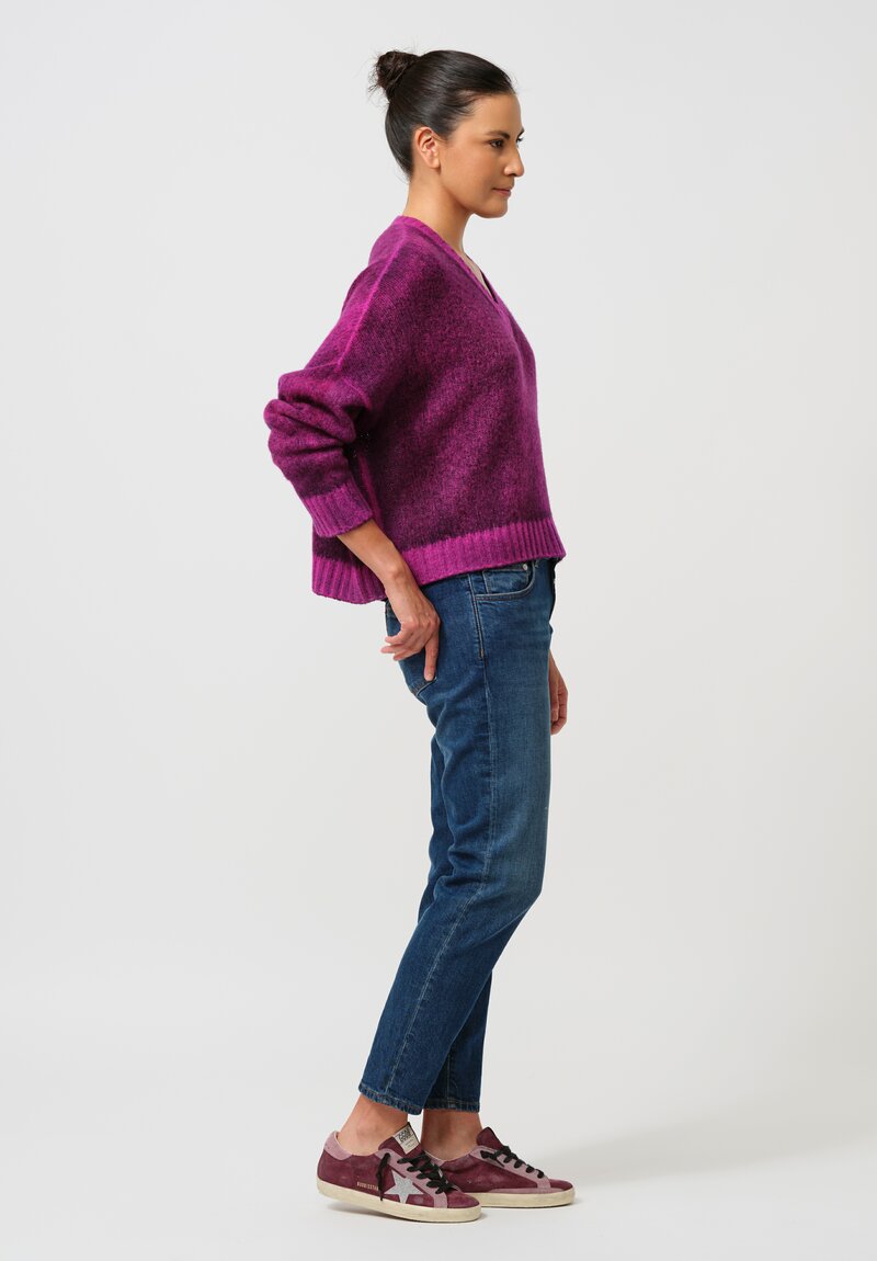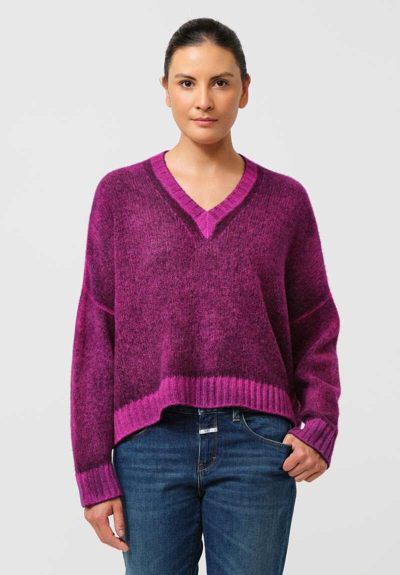 Cashmere & Silk Barchetta V-Neck Pullover in Nero & Orchid Purple