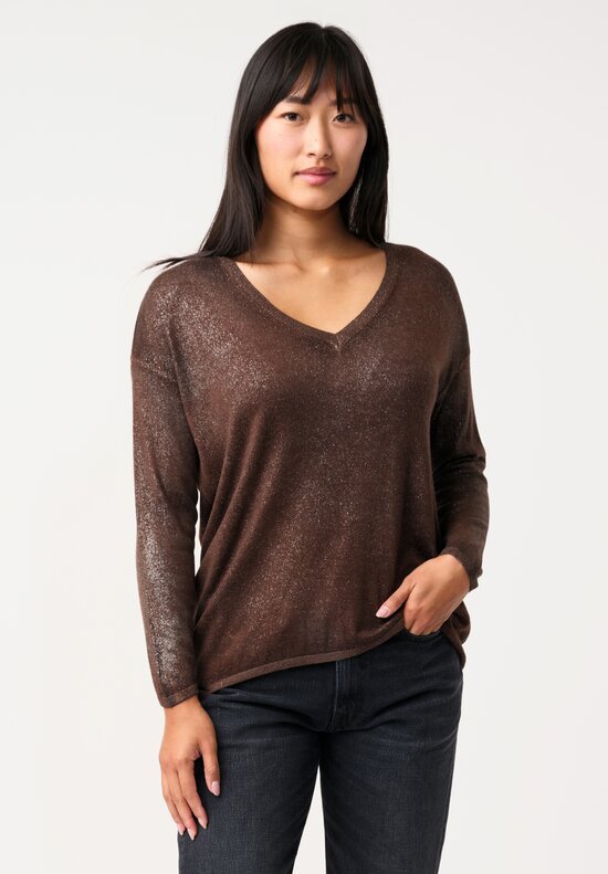 Avant Toi Cashmere & Silk Hand-Painted V-Neck Sweater in Nero & Mandarancio Orange