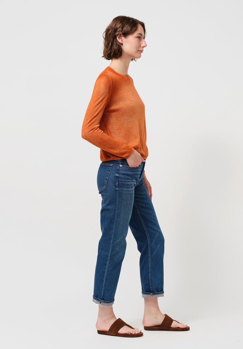 Avant Toi Cashmere & Silk Nuova Barchetta Sweater in Nero & Ambra Orange