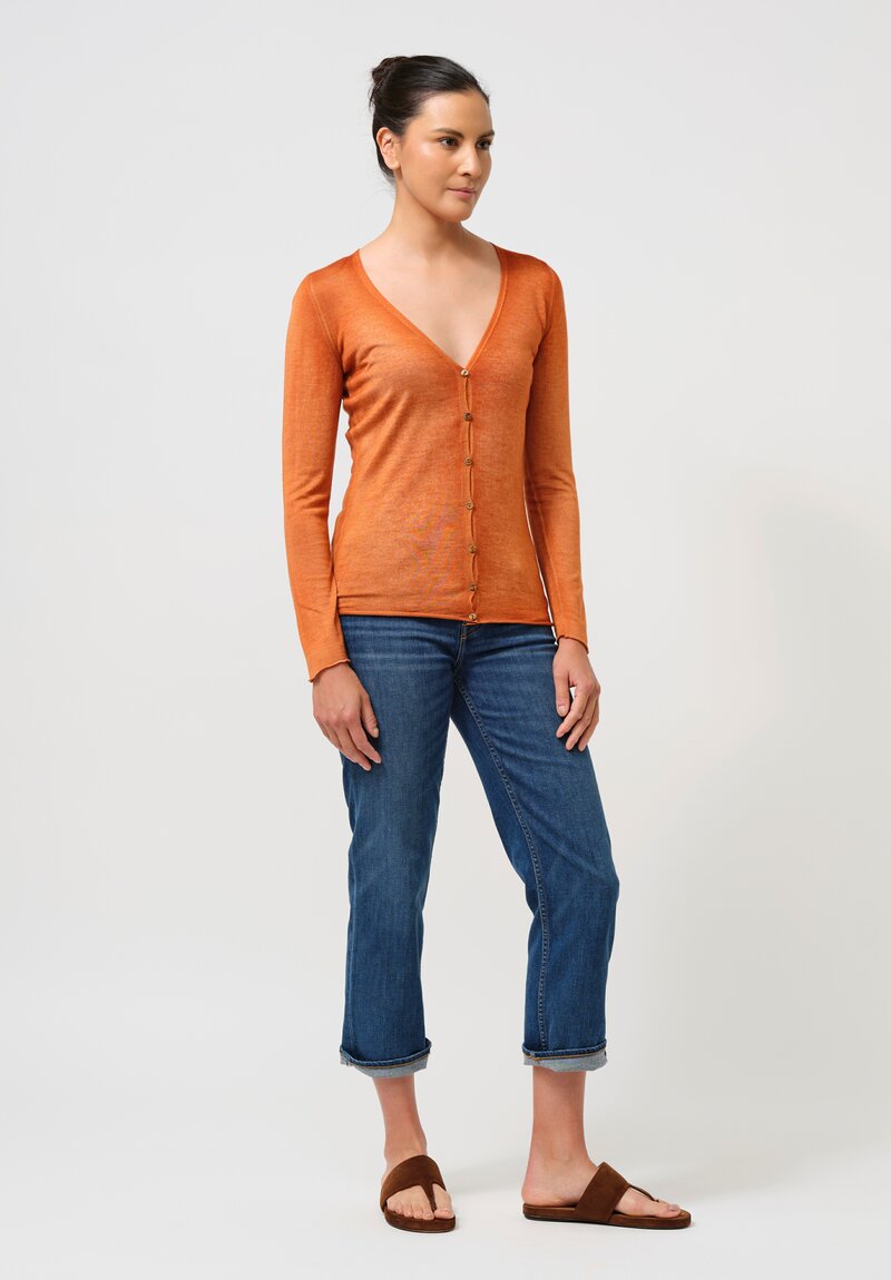 Avant Toi Cashmere & Silk V-Neck Cardigan in Nero & Ambra Orange
