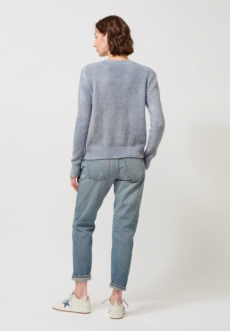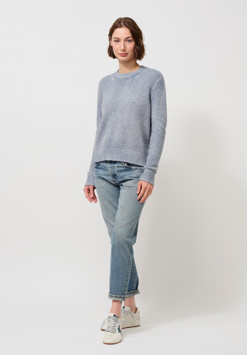 Cotton Knit Garzato Crew Neck Sweater in Titanium Blue