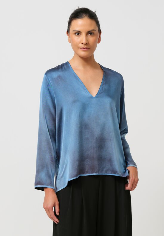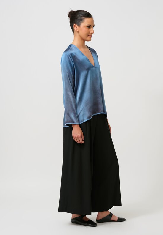 Avant Toi Hand-Painted Cashmere & Silk Barchetta Pullover in Nero Nigella Blue