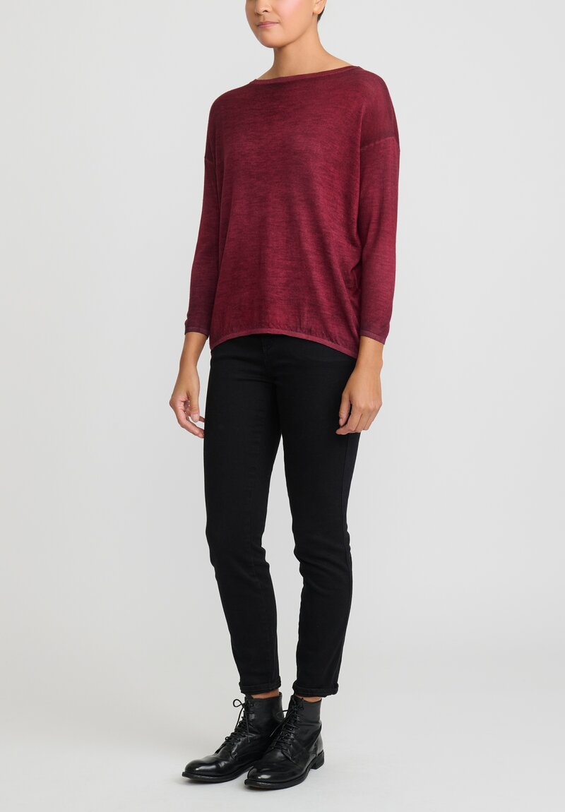 Avant Toi Hand-Painted Cashmere & Silk Barchetta Sweater in Nero Wine Red