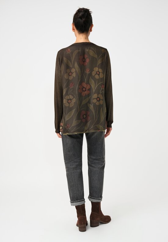Hand-Painted Cashmere & Silk Loose Knit Cardigan in Ghiaccio Grey