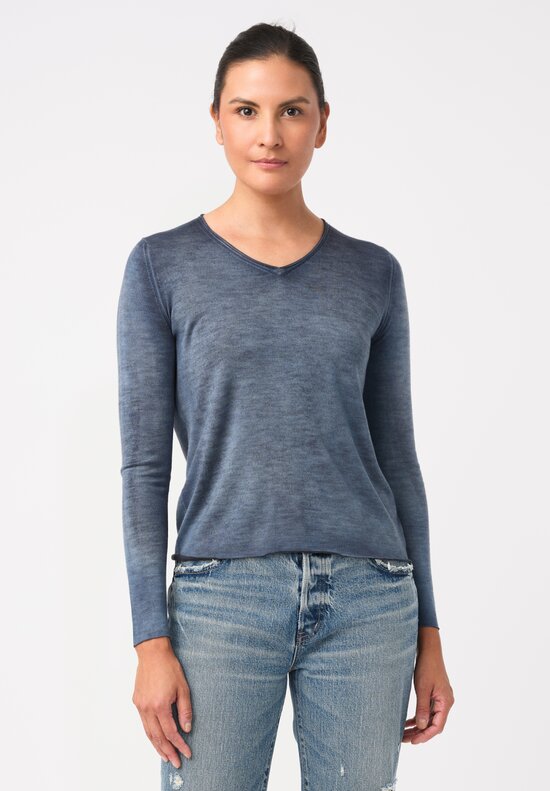 Avant Toi Hand-Painted Cashmere & Silk Loose Knit Cardigan in Ghiaccio Grey
