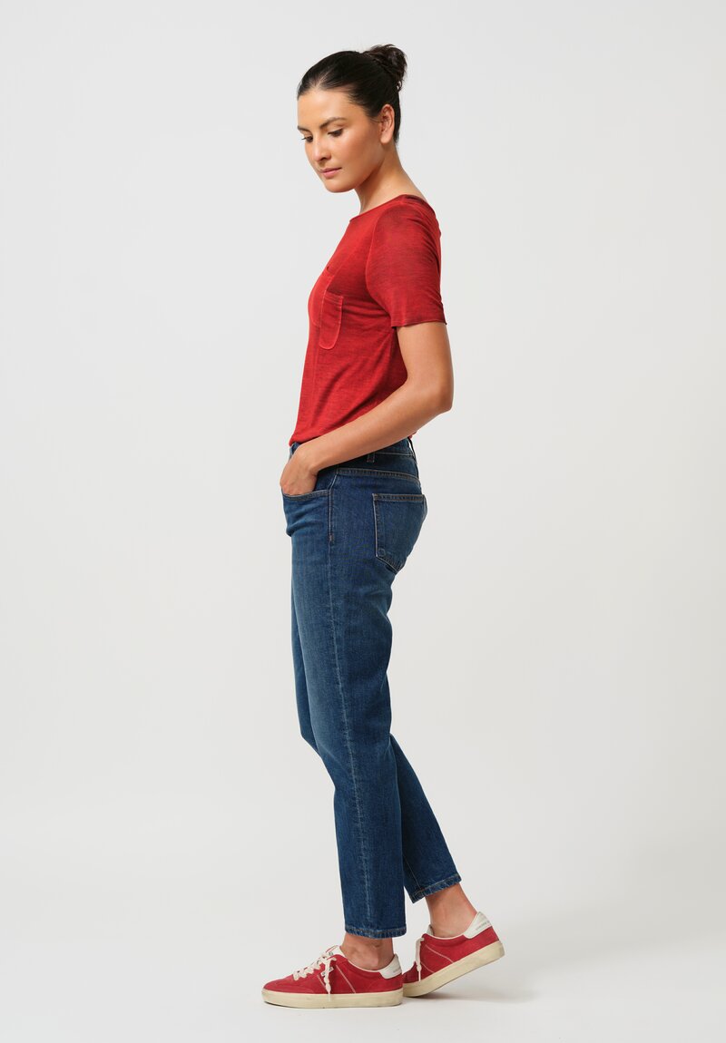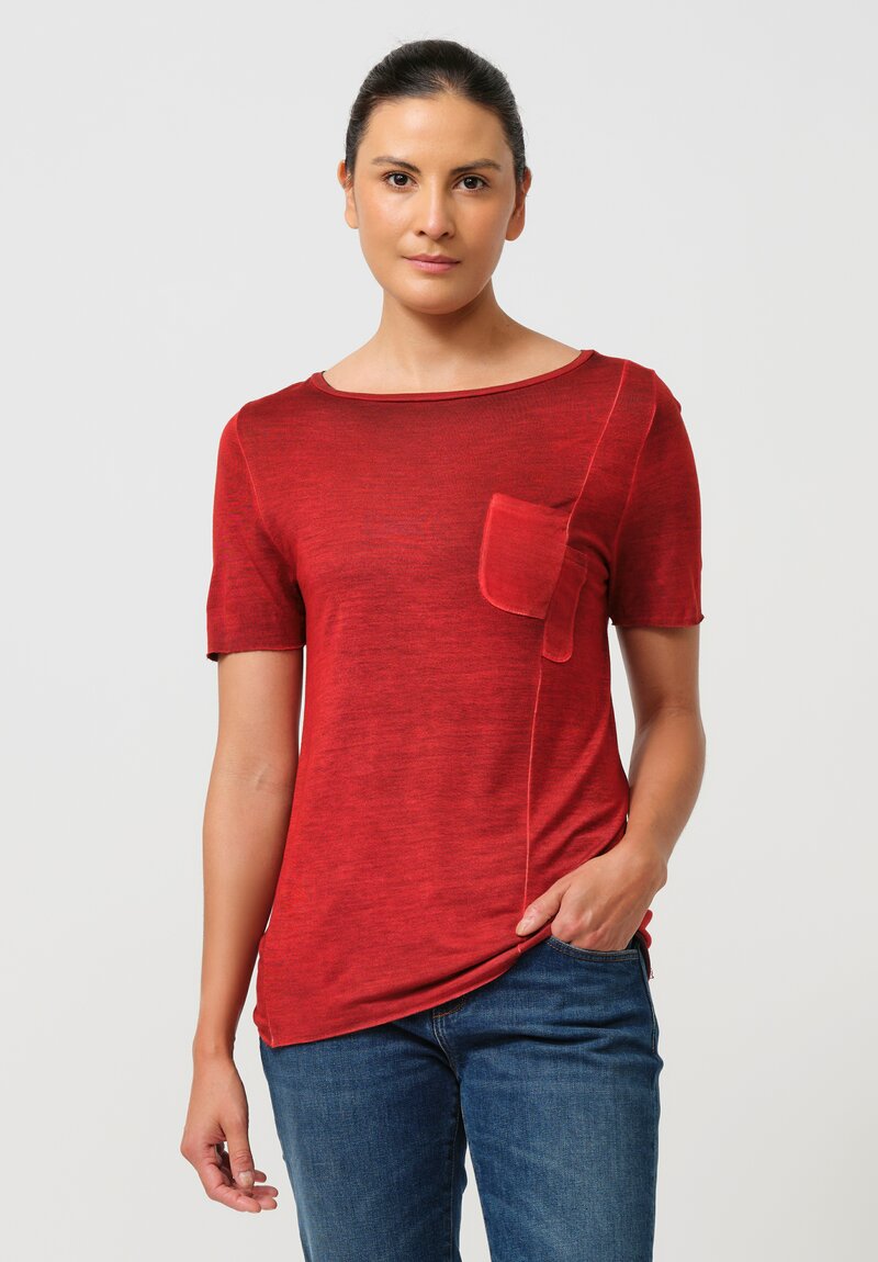 Avant Toi Hand-Painted Cut Pocket Tee in Nero & Camellia Red