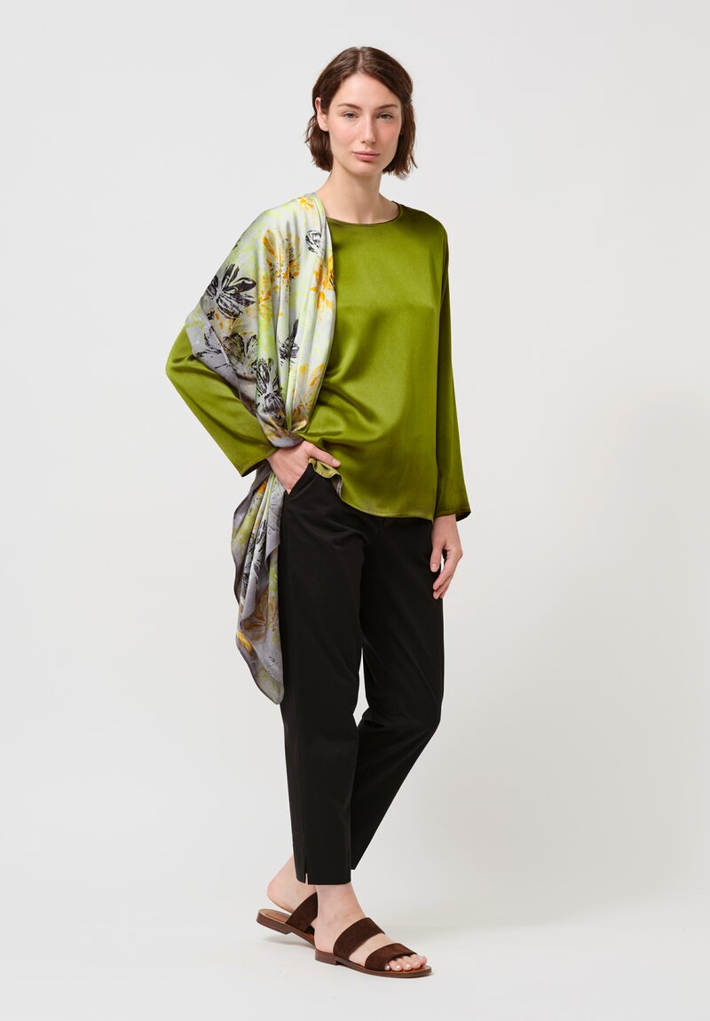 Avant Toi Hand Painted Silk Barchetta Top in Nero Lime Green