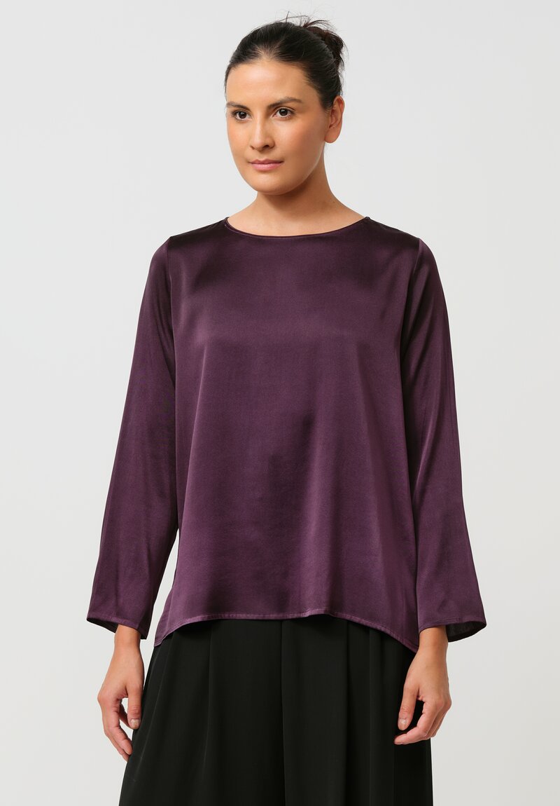 Hand Painted Silk Barchetta Top in Nero & Mosto Purple