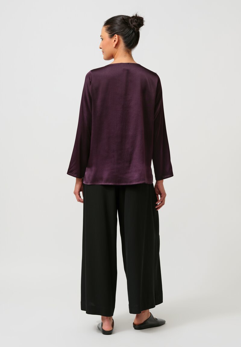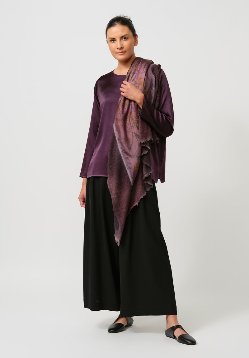 Avant Toi Hand Painted Silk Barchetta Top in Nero & Mosto Purple