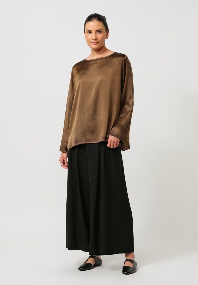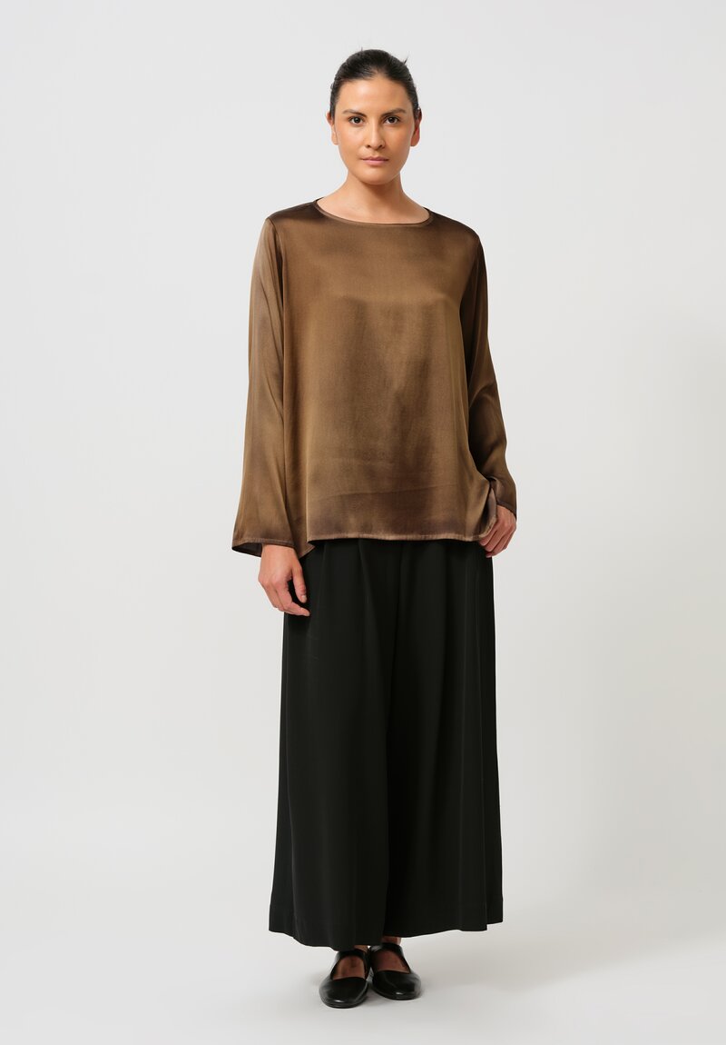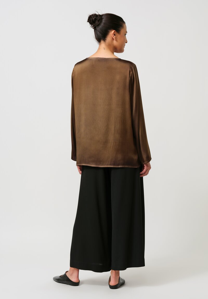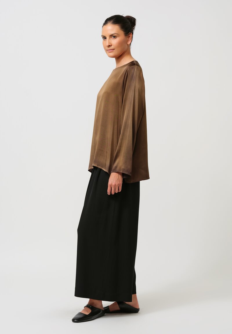 Avant Toi Hand Painted Silk Barchetta Top in Nero & Sughero Brown