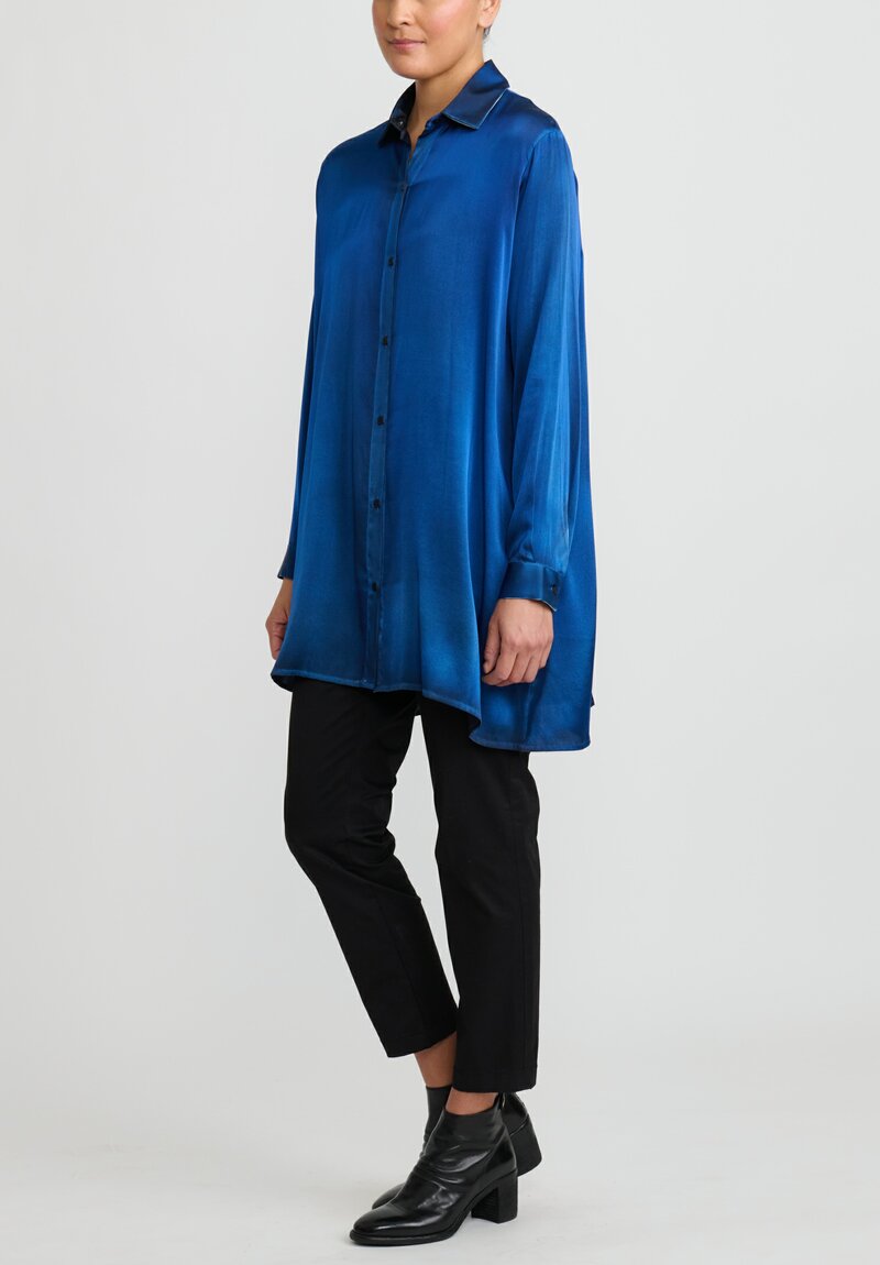 Hand-Painted Silk Shirt in Nero Genziana Blue