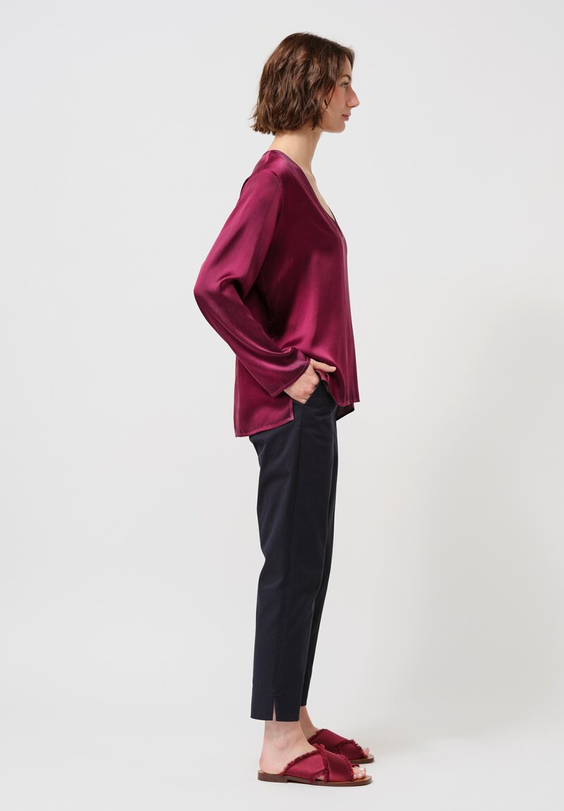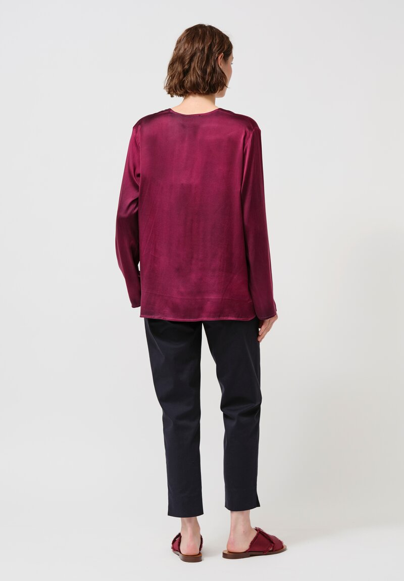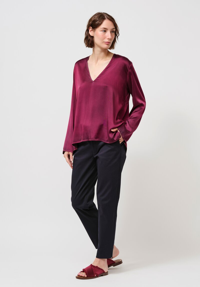 Avant Toi Hand-Painted Silk V-Neck Barchetta Top in Nero Wine Red