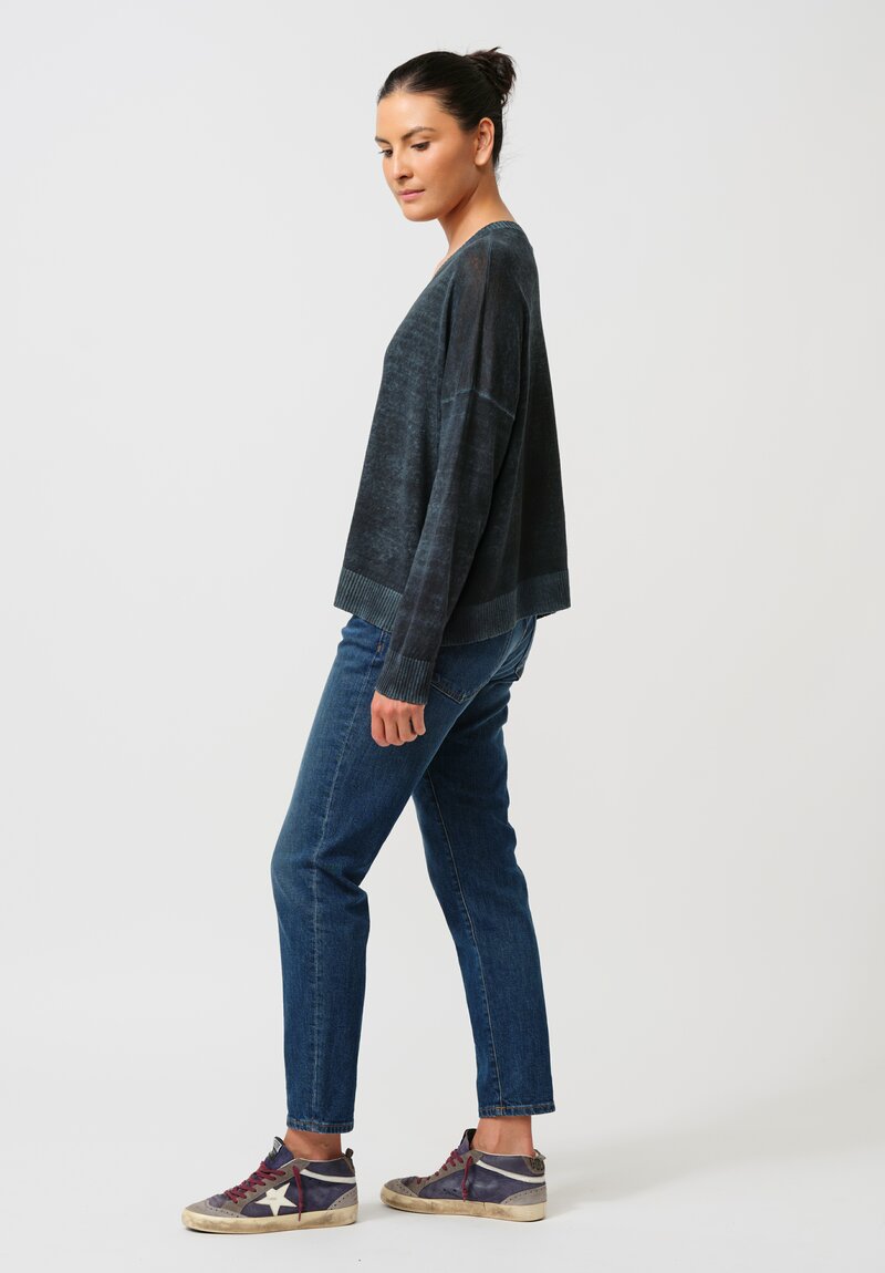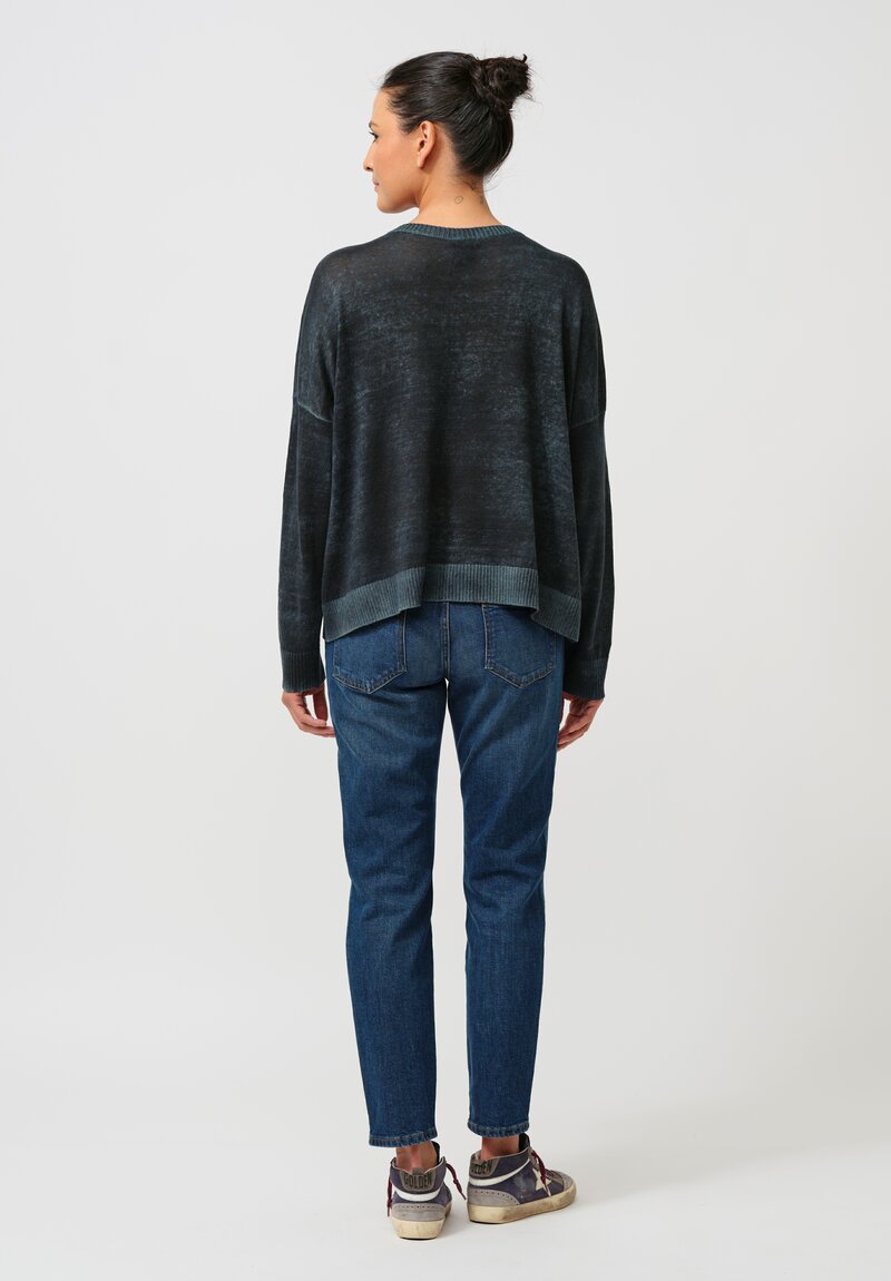 Avant Toi Linen & Cotton Ribbed Hem V-Neck Sweater in Nero & Forest Green