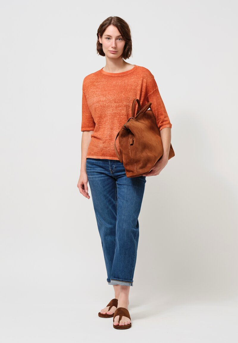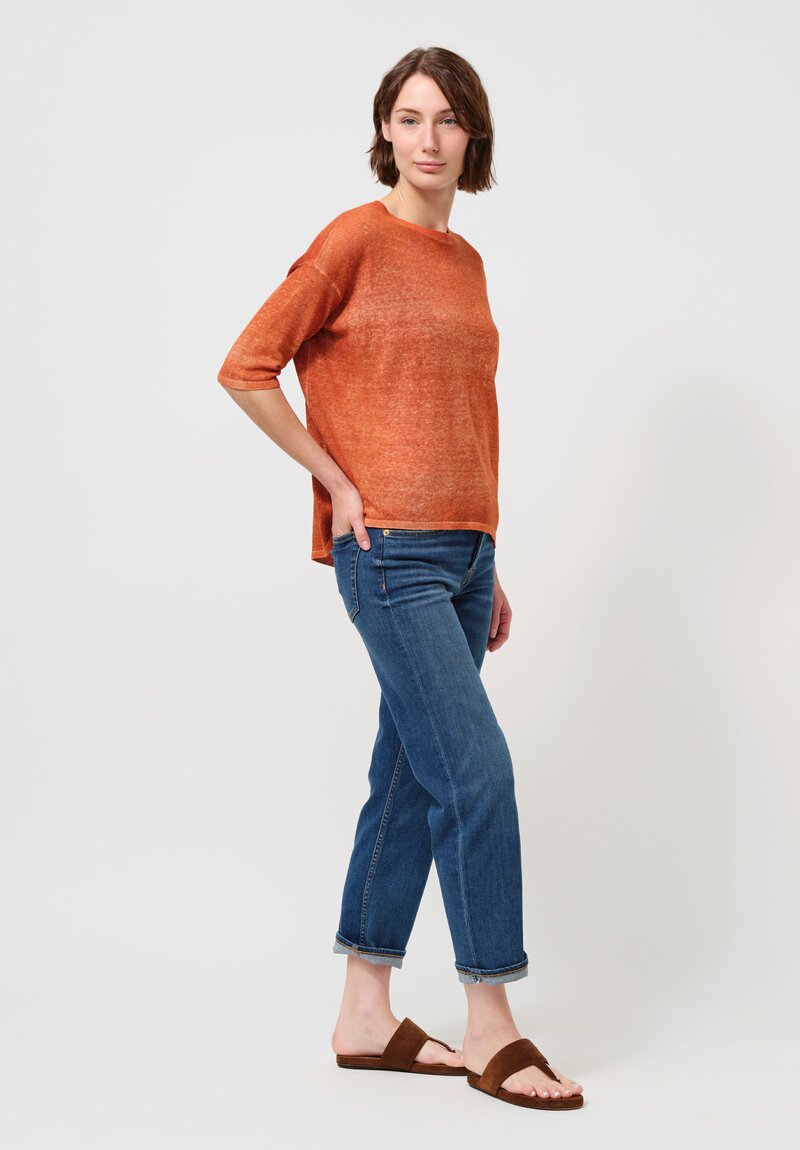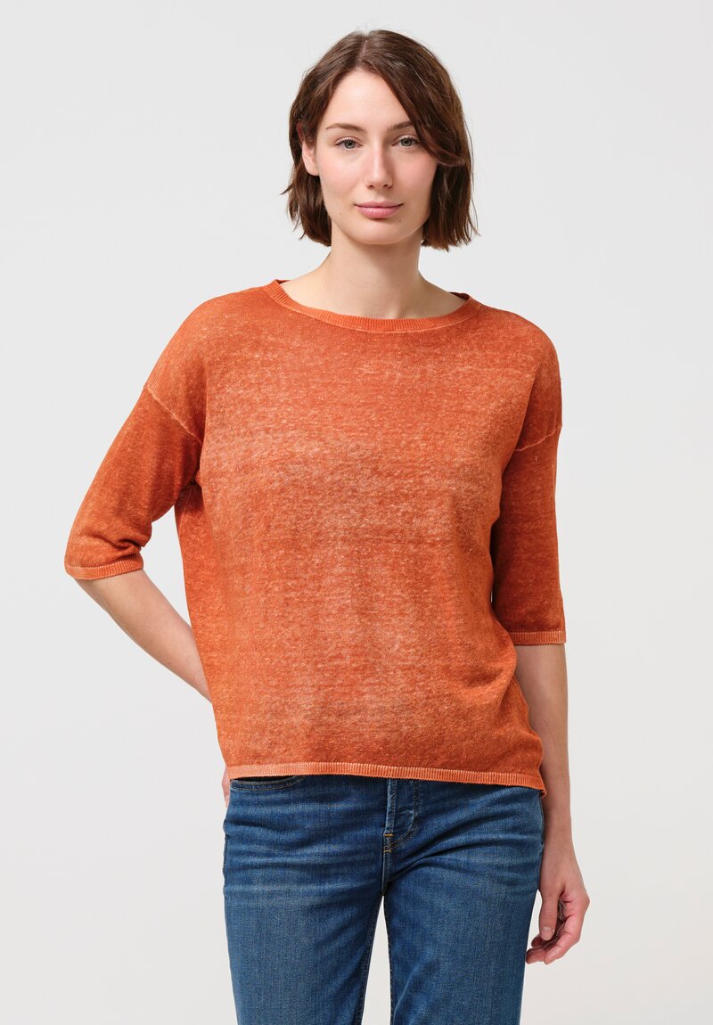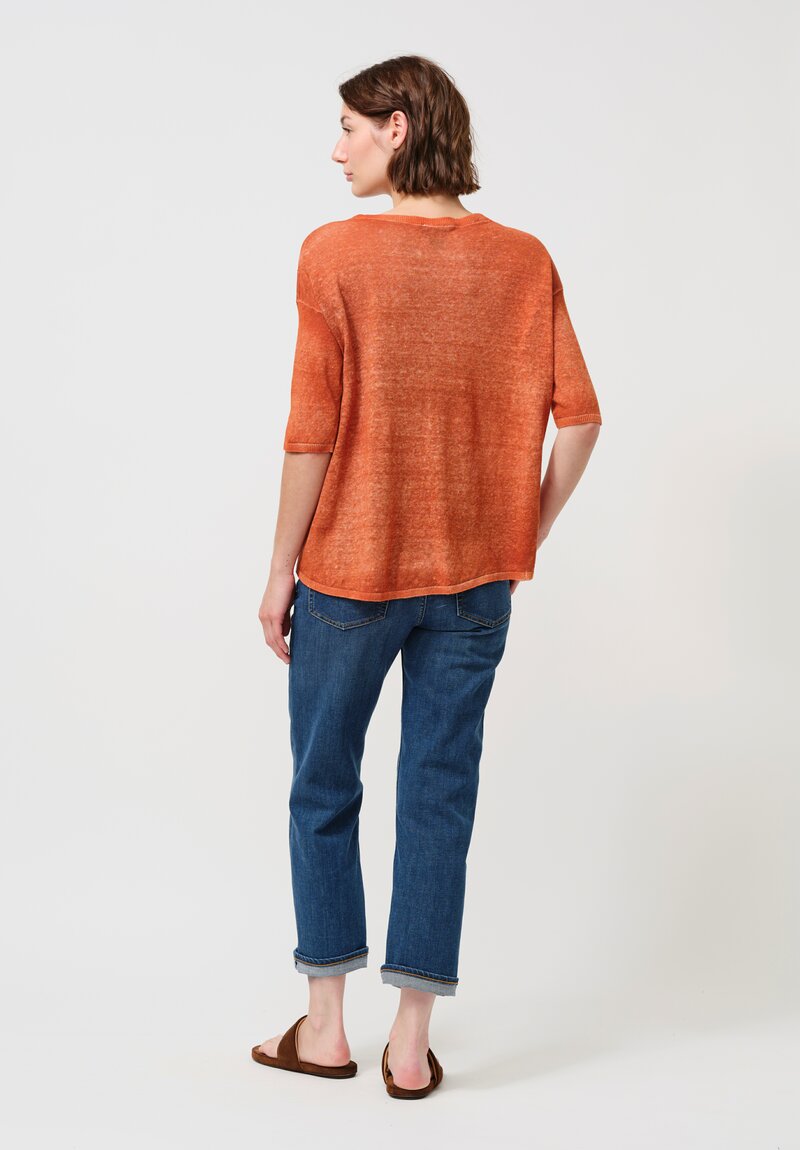 Avant Toi Linen Knitted Pullover Top in Nero & Ambra Orange