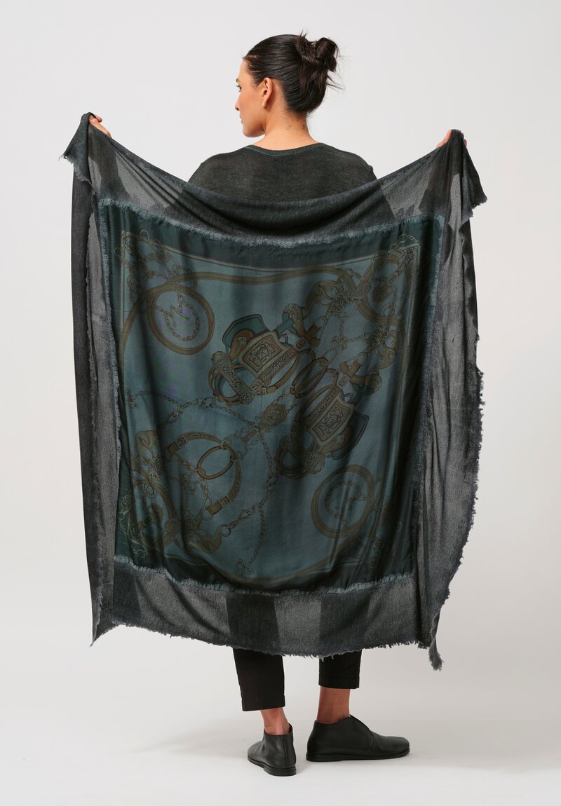 One-of-a-Kind Cashmere & Silk Quadrello Scarf in Verderame Green Bridle