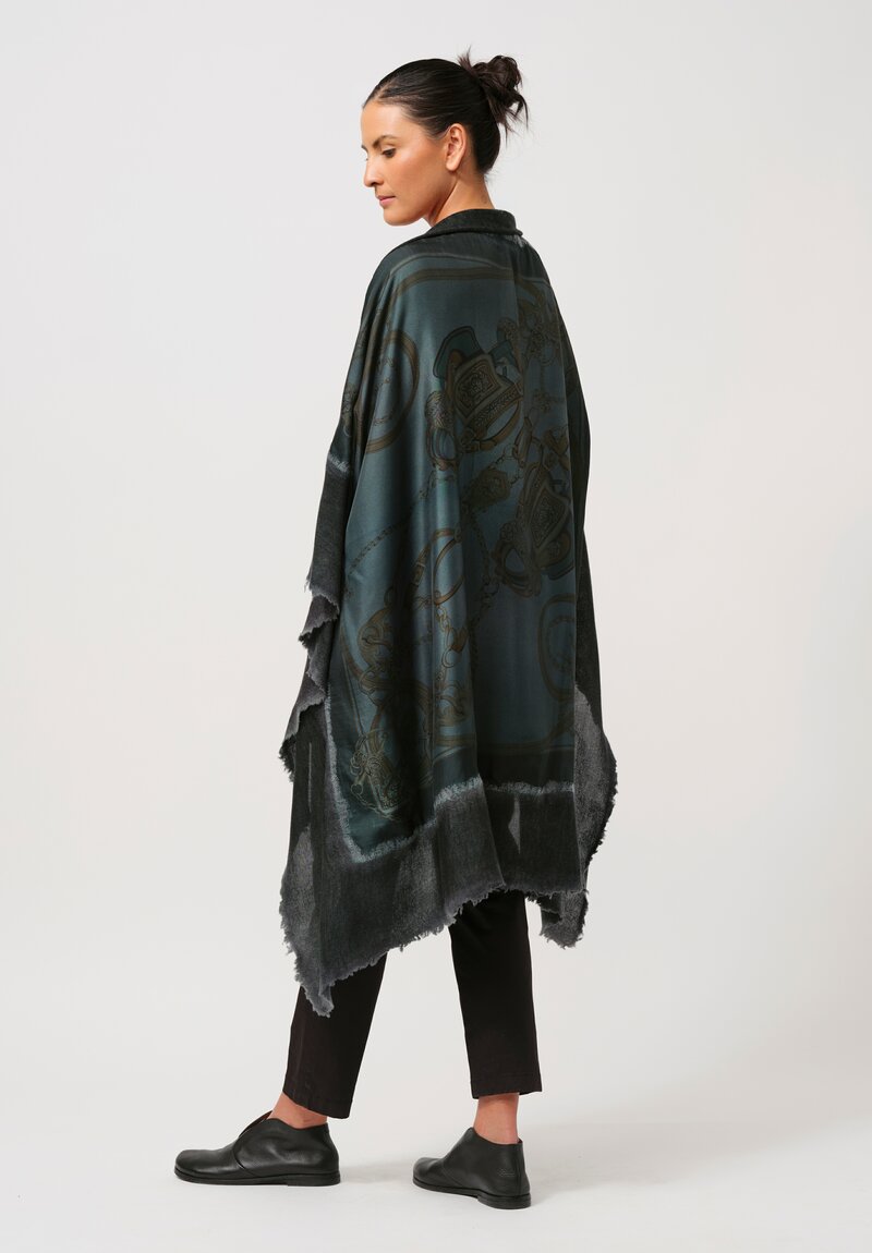 Avant Toi One-of-a-Kind Cashmere & Silk Quadrello Scarf in Verderame Green Bridle