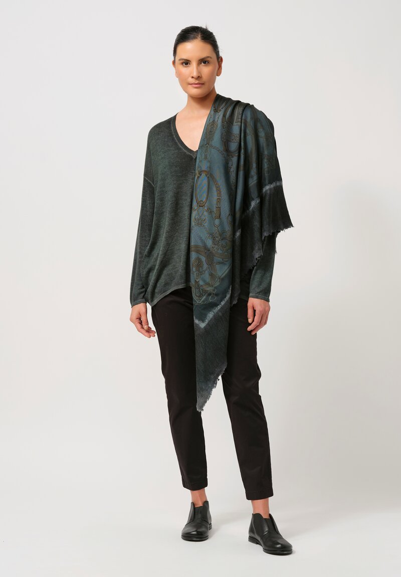 • Avant Toi Cashmere & Silk Hand-Painted V-Neck Sweater in Nero Rosco Green