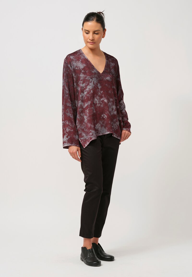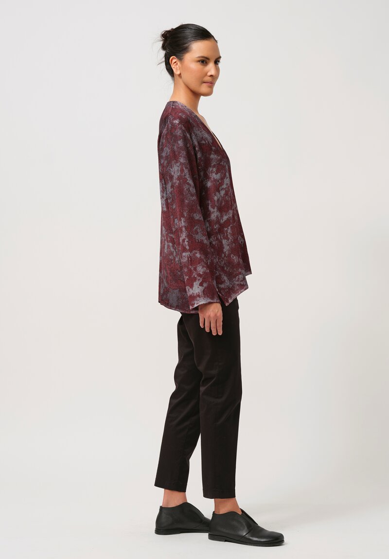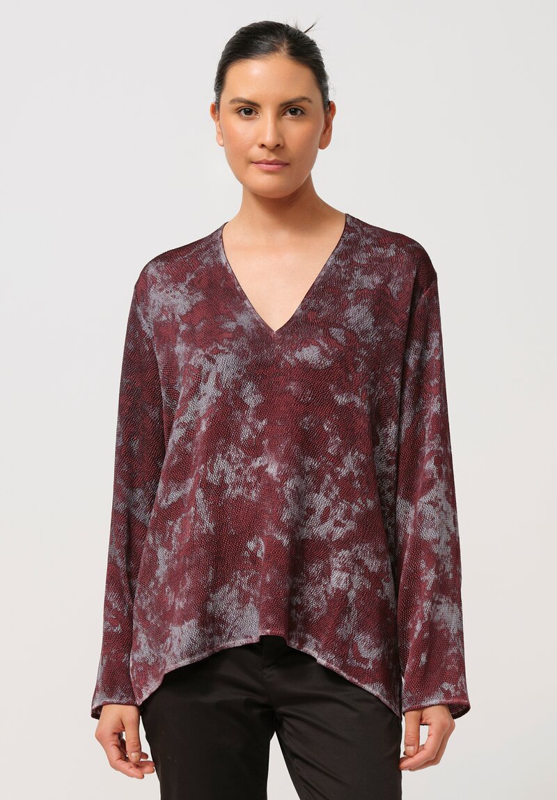 Puckered Silk Martellata Top in Silver & Agata Purple