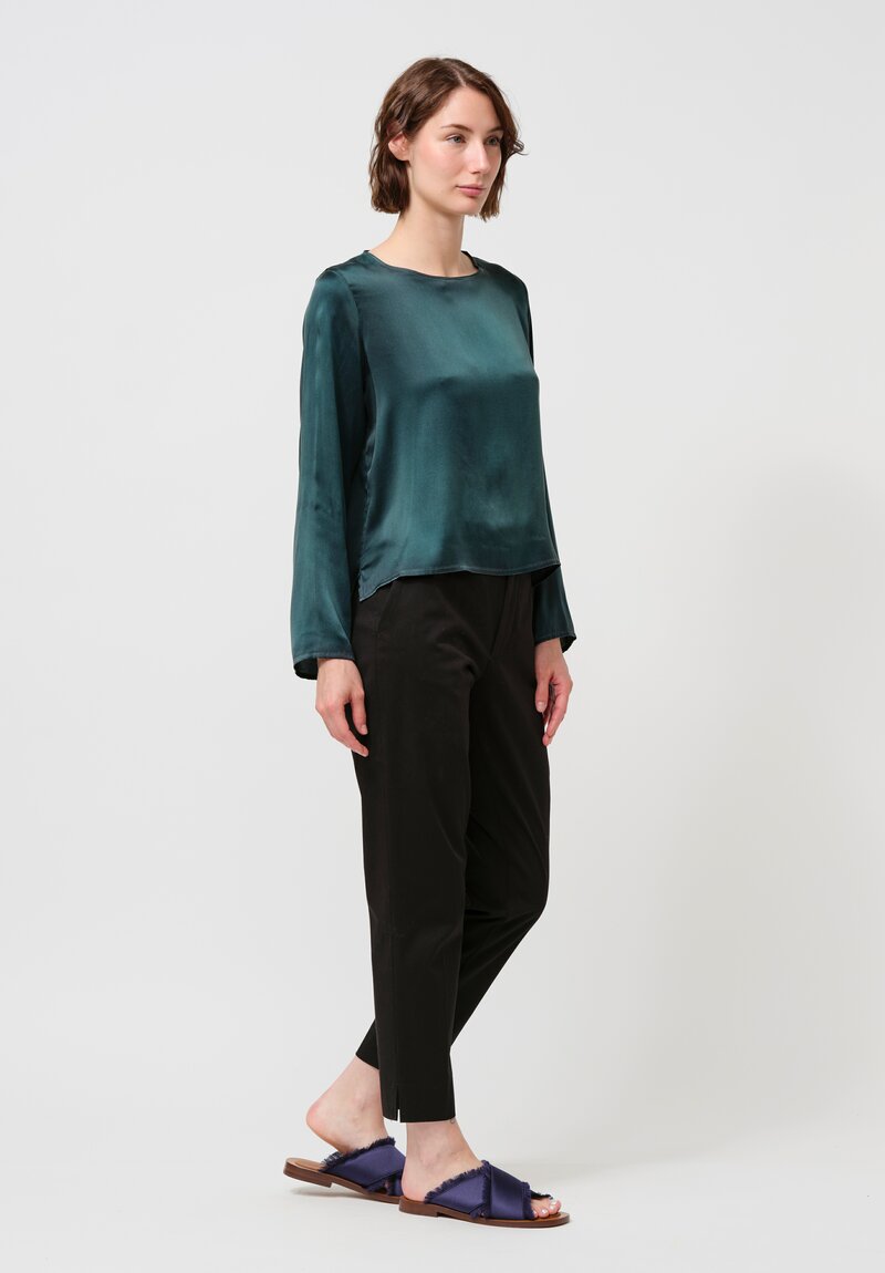 Avant Toi Round Neck Maglia Silk Top in Nero & Verde Frame
