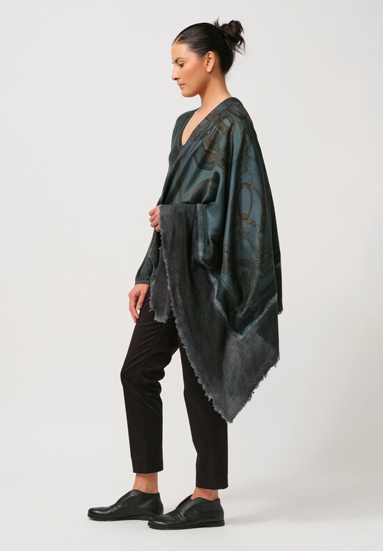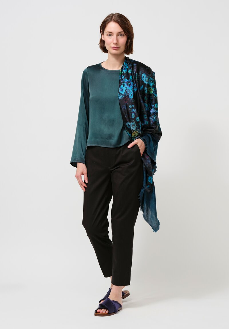 • Avant Toi Cashmere & Silk Quadrello Dark Flowers Scarf in Nero Topazio Blue