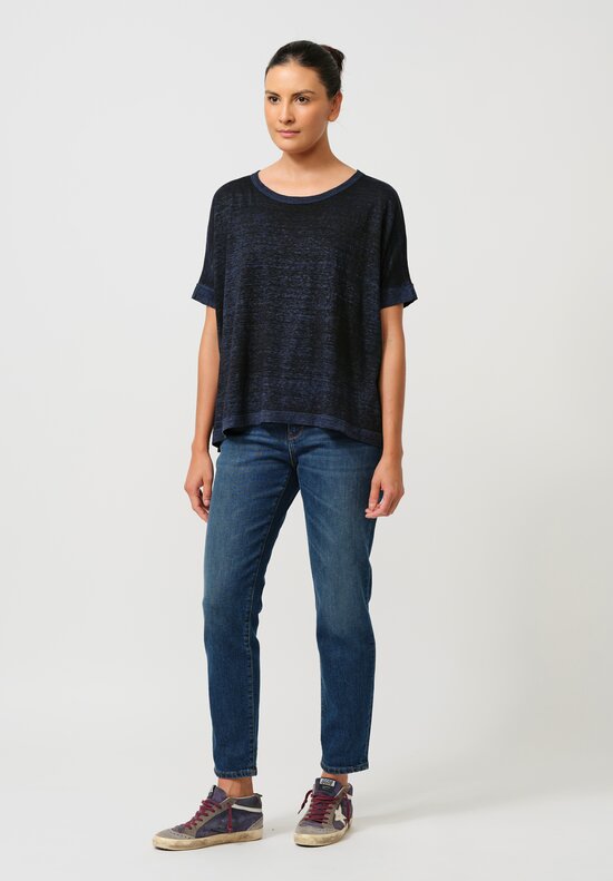 Avant Toi Silk Barchetta Dress in Nero Water Blue