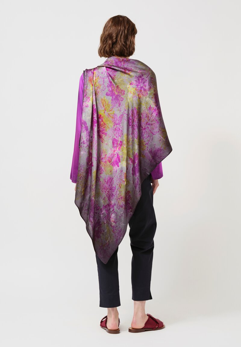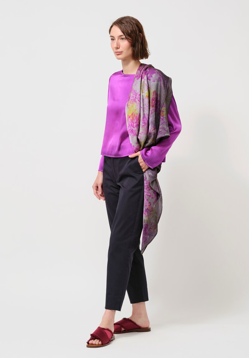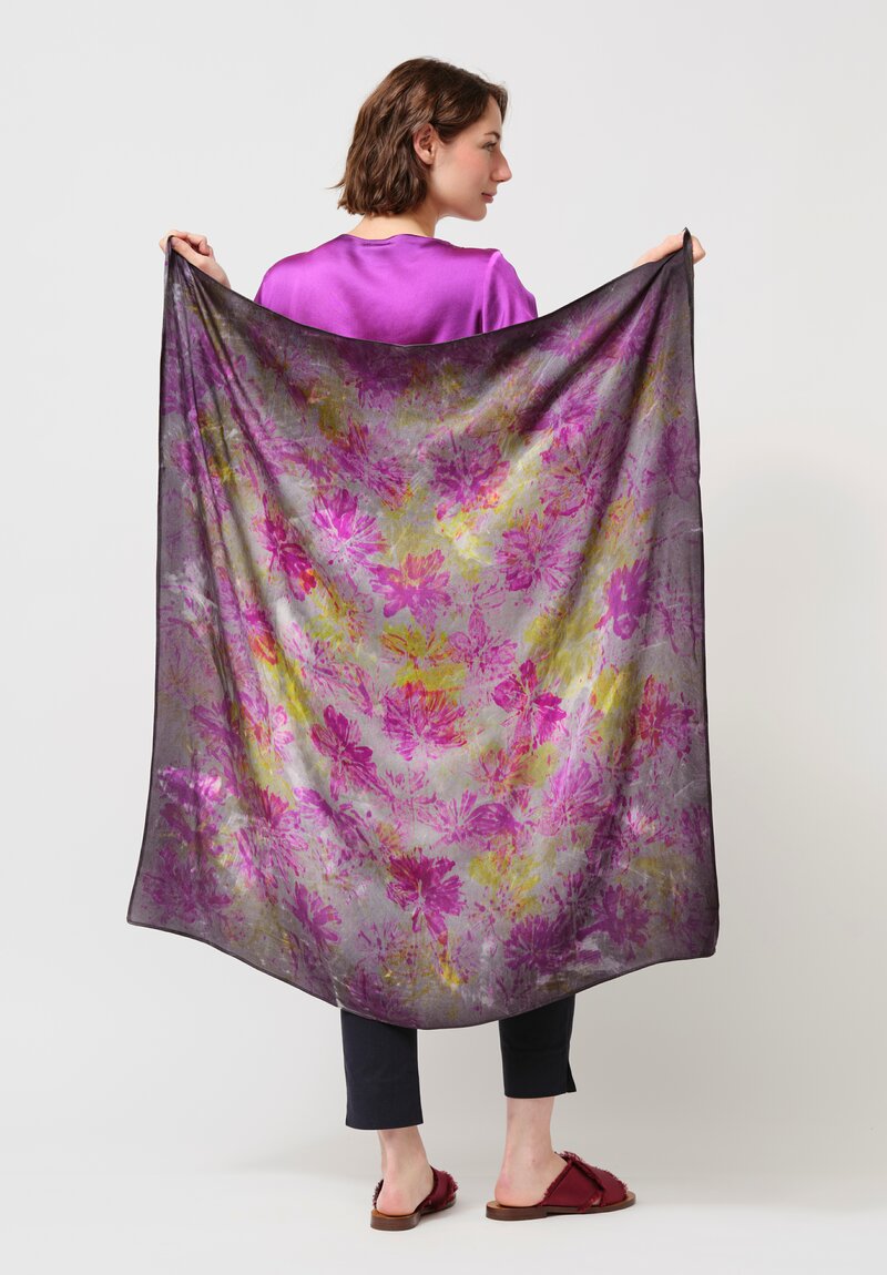 Avant Toi Silk Floral Scarf in Nero, Orchid Purple & Lime Green
