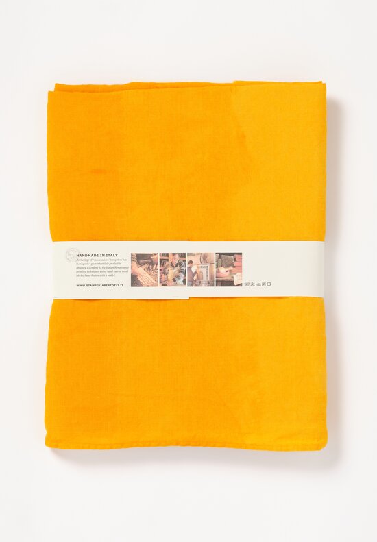Family-owned since 1920, the collective of Bertozzi artisans are skilled in the traditional Italian block-printing method. They design numerous original motifs and use color recipes that are well-kept family secrets. Situated in the northernmost hills of Italy, the workshop concerns itself with environmental sustainability by operating completely on solar-based power. The result of their efforts are linens and ceramics layered with distinct brayer lines and brush strokes in a rich variety of colors that suit all seasons and occasions.