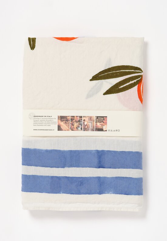 Family-owned since 1920, the collective of Bertozzi artisans are skilled in the traditional Italian block-printing method. They design numerous original motifs and use color recipes that are well-kept family secrets. Situated in the northernmost hills of Italy, the workshop concerns itself with environmental sustainability by operating completely on solar-based power. The result of their efforts is linens and ceramics layered with distinct brayer lines and brush strokes in a rich variety of colors that suit all seasons and occasions.