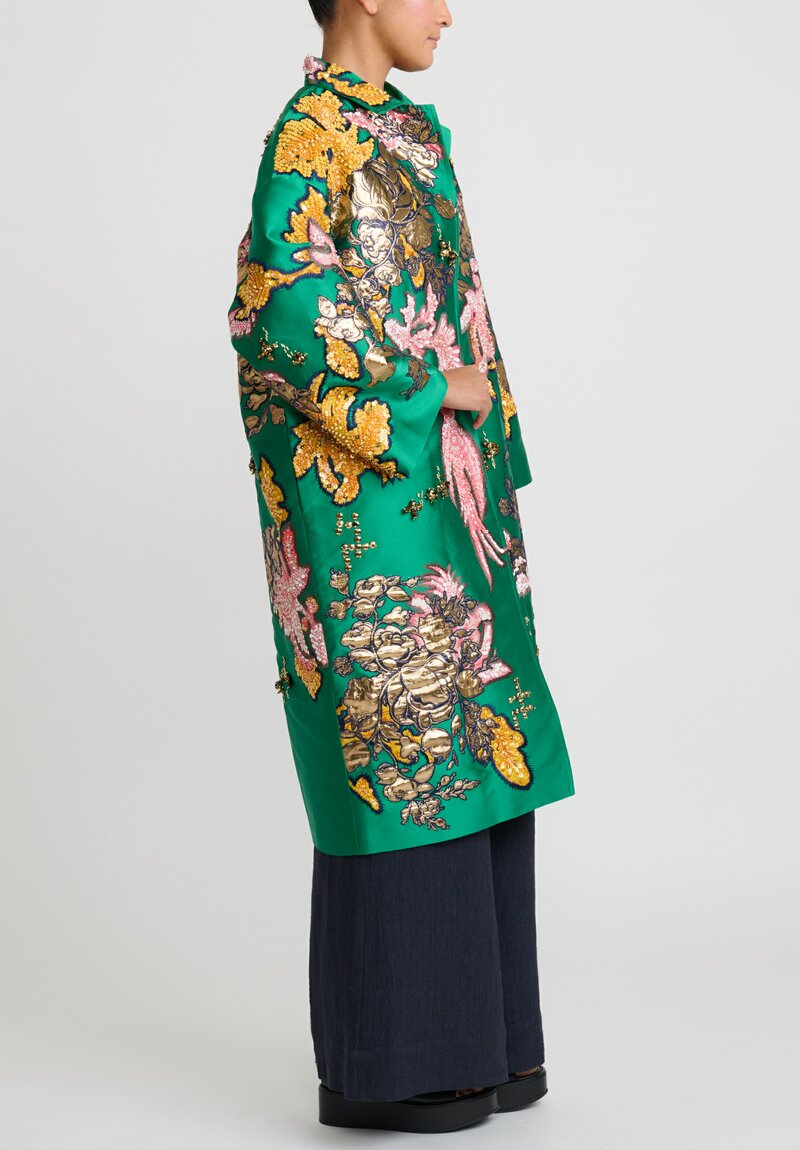 Biyan Double-Faced Silk Taffeta Hand Embellished Rendara Coat in Green
