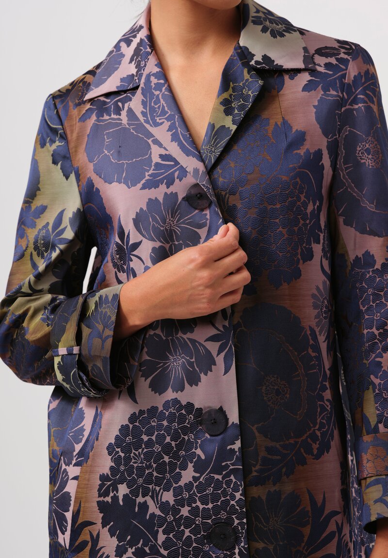 Biyan Hera Jacquard Coat in Purple, Navy & Green