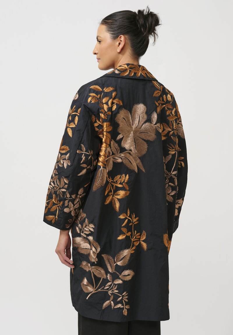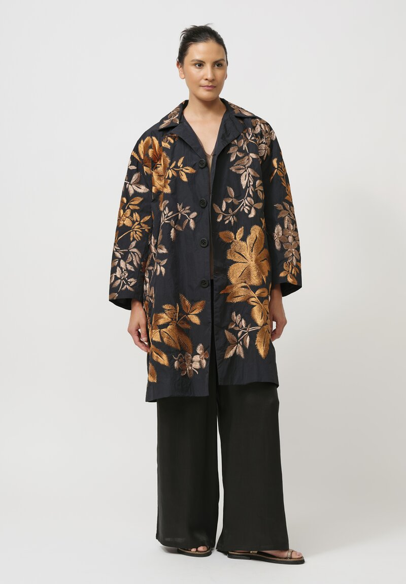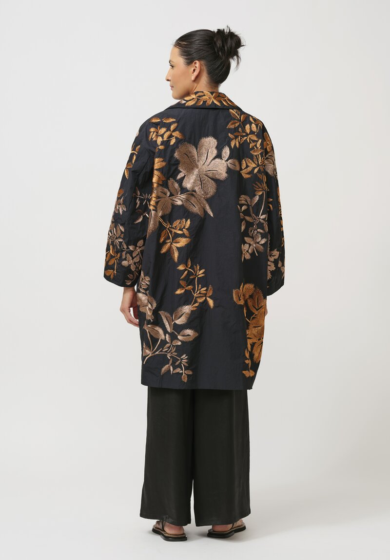 Biyan Leaf Embroidered Oversize Coat in Navy Blue