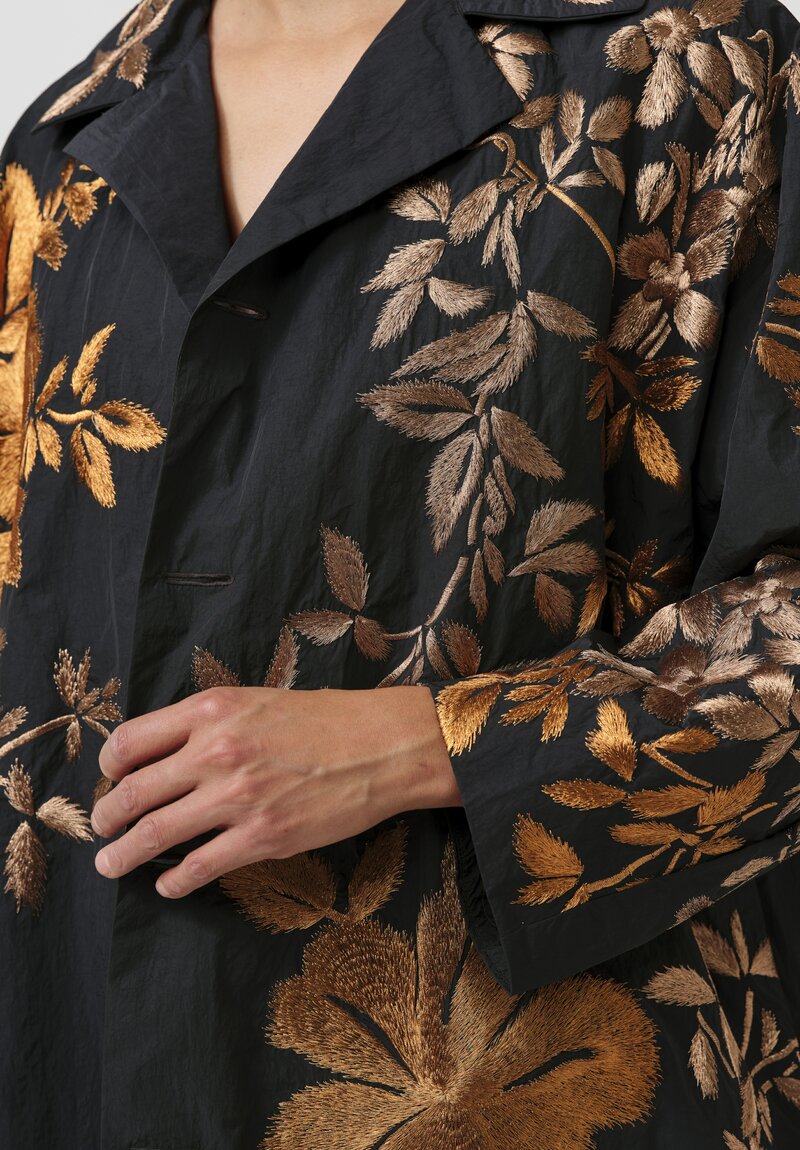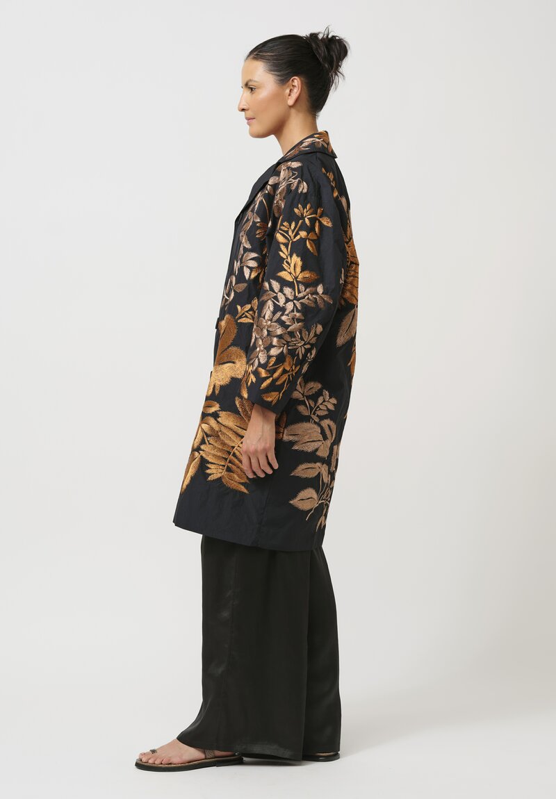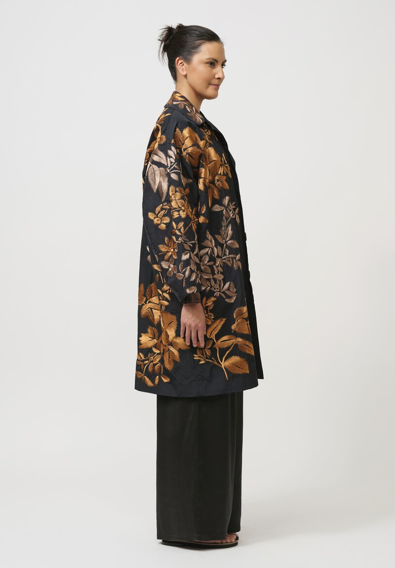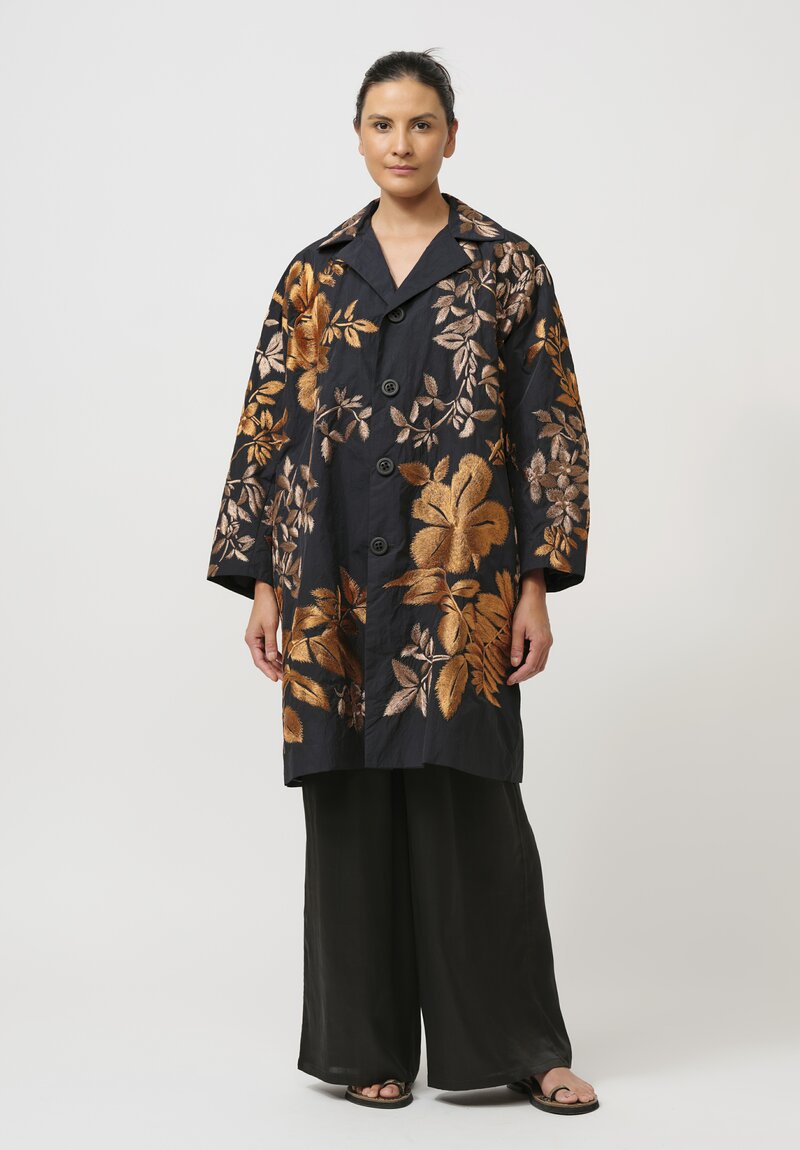 Biyan Leaf Embroidered Oversize Coat in Navy Blue