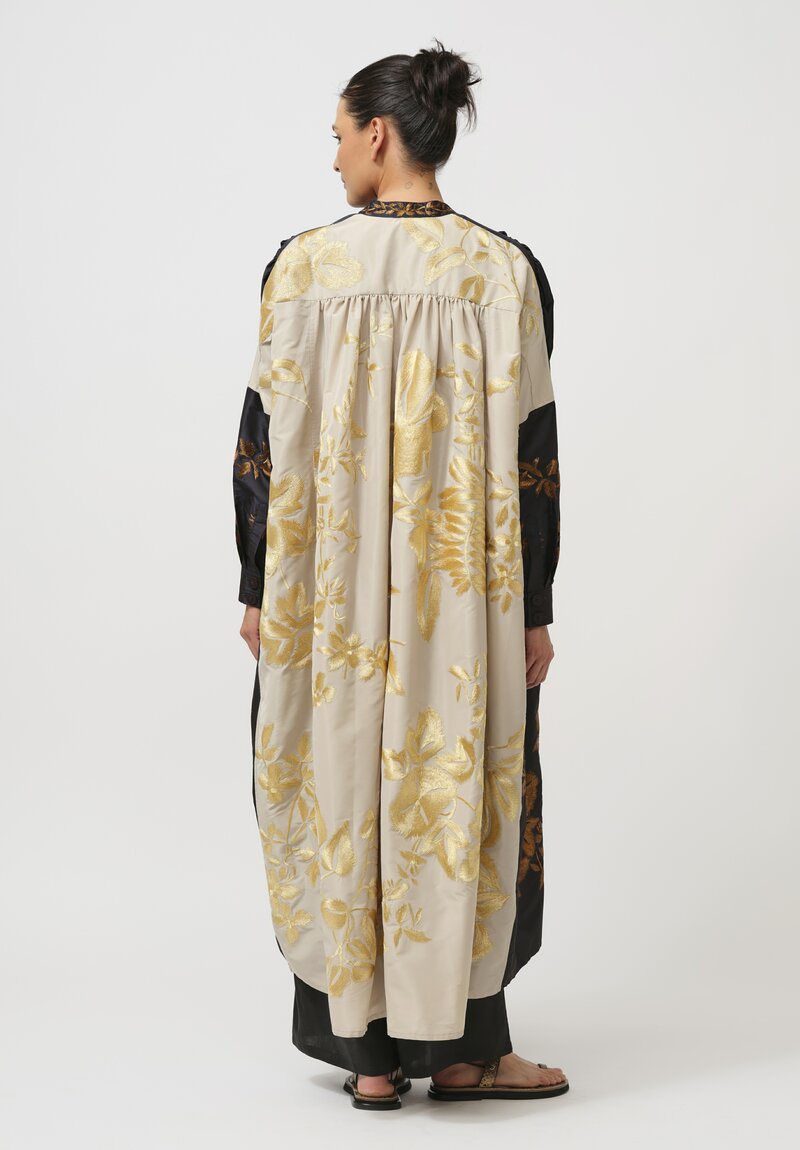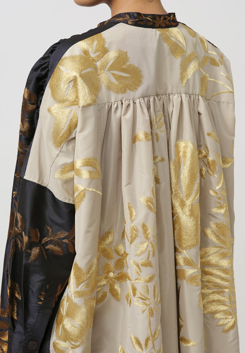 Biyan Leaf Embroidered Taffeta Coat Dress in Navy Blue & Cream