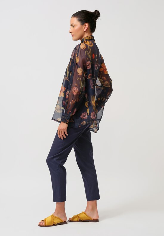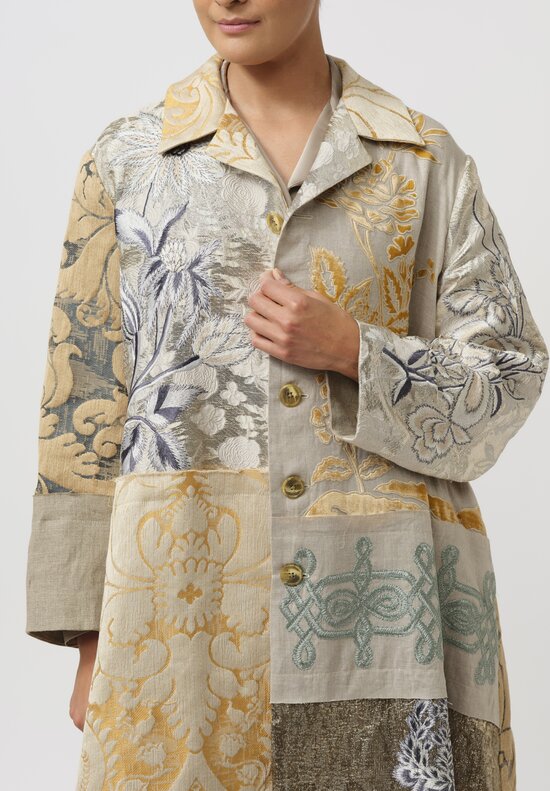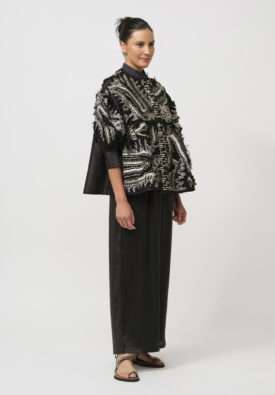 Biyan Silk & Cotton Hiero Kimono Coat in Navy, Green & Cream
